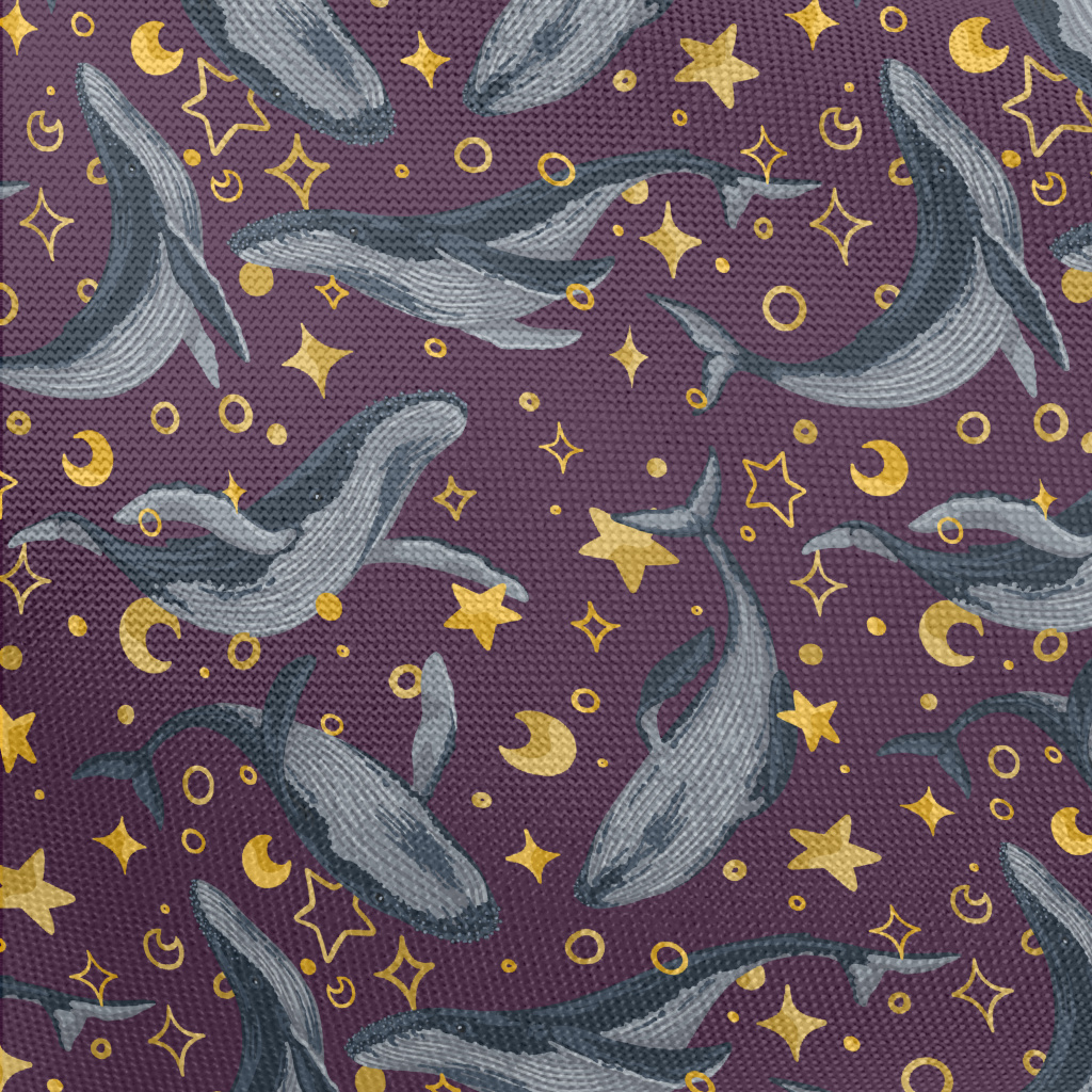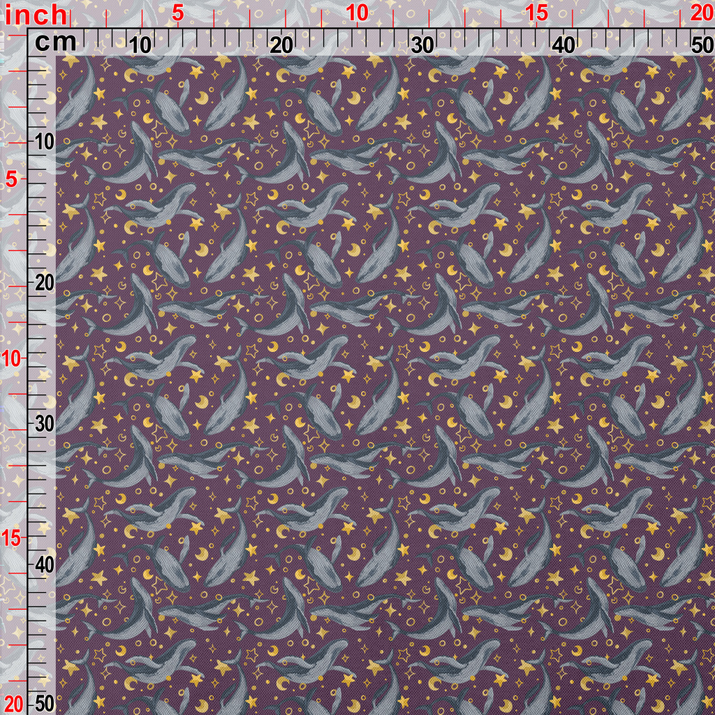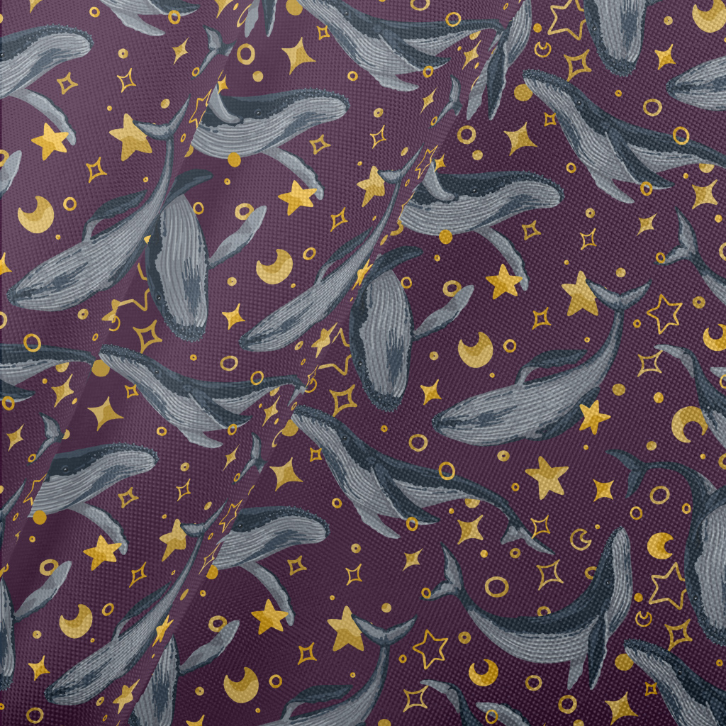 手繪鯨魚與星星春亞紡(幅寬160公分)