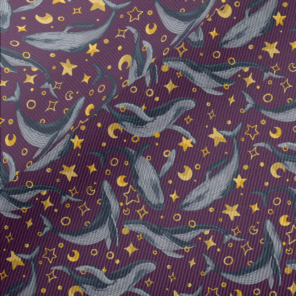 手繪鯨魚與星星厚棉布(幅寬150公分)