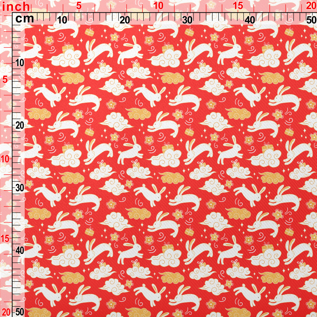 中式祥雲與兔子厚棉布(幅寬150公分)