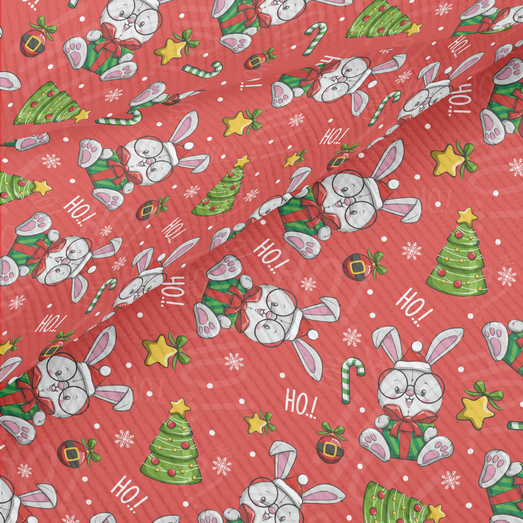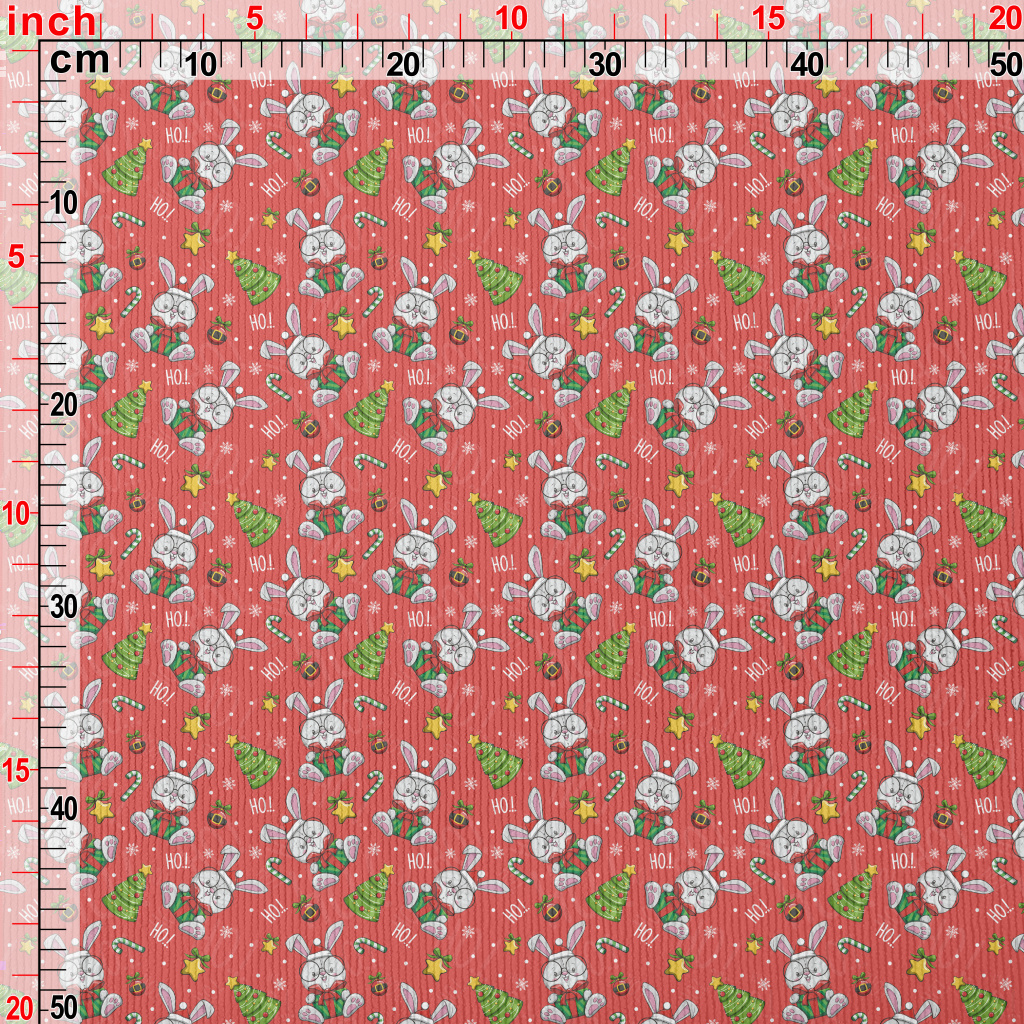 卡通聖誕兔插畫燈芯絨(幅寬150公分)