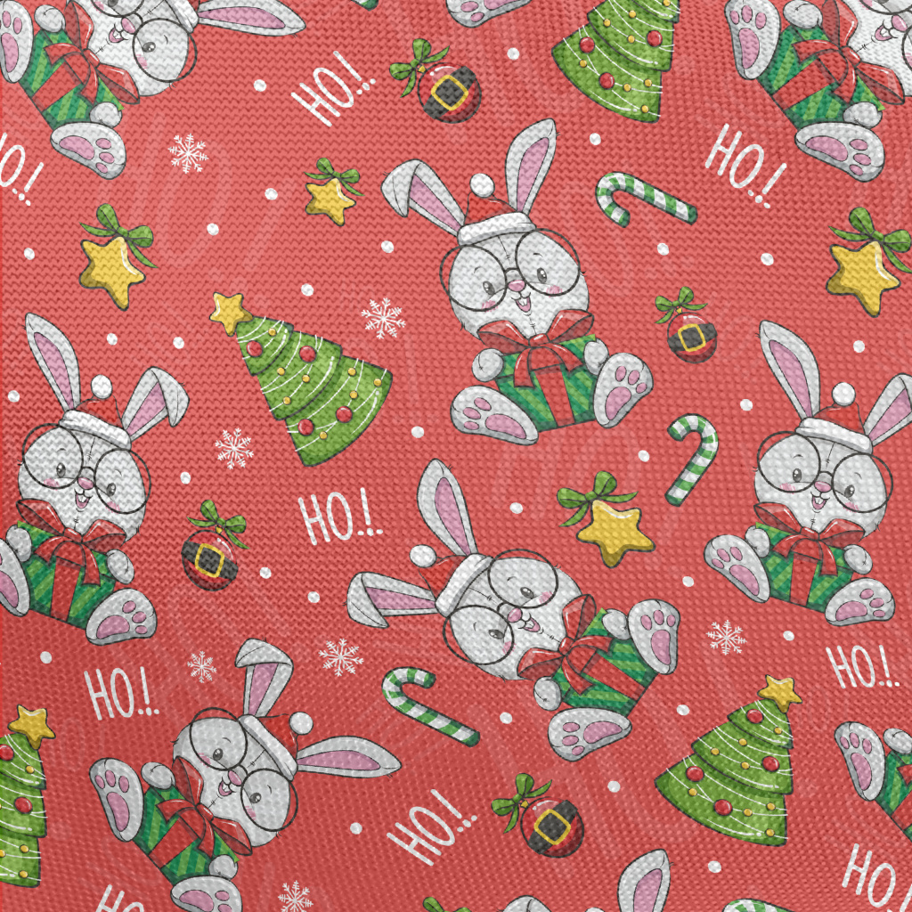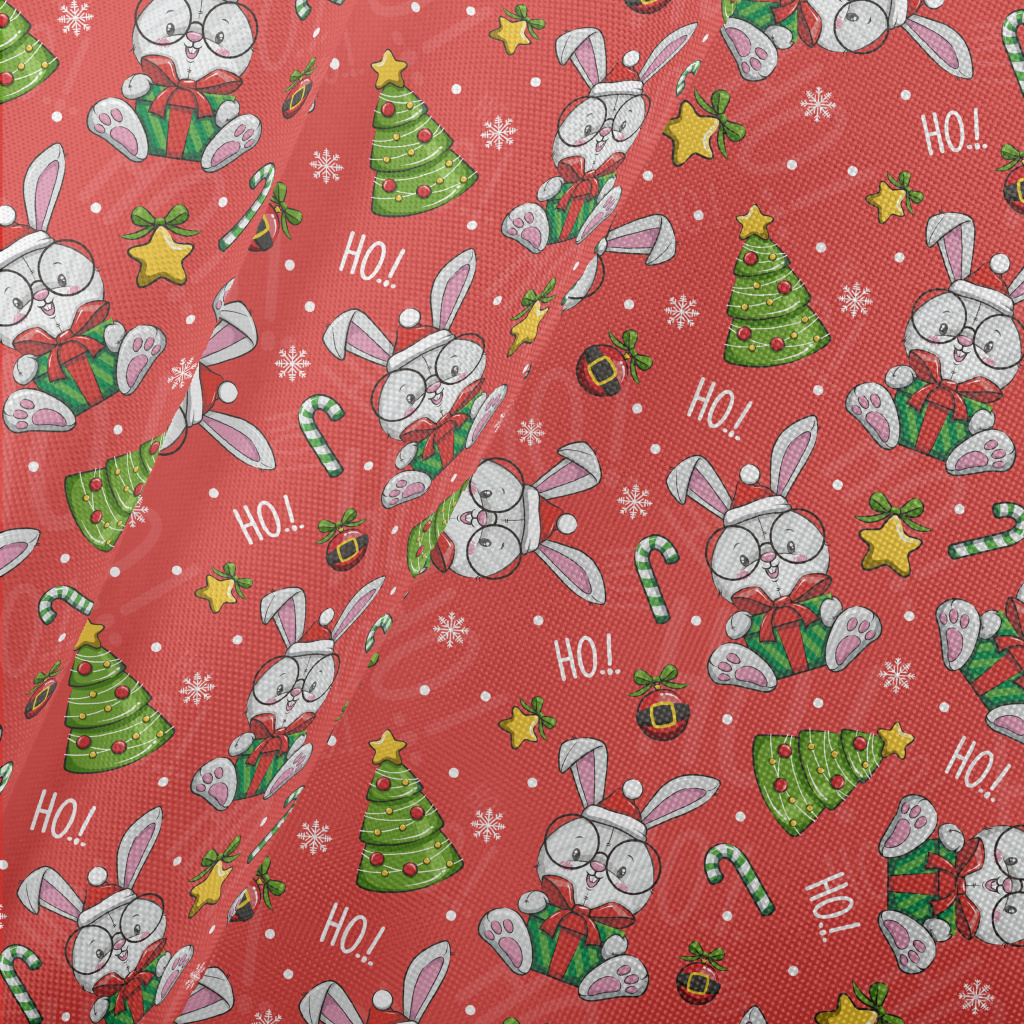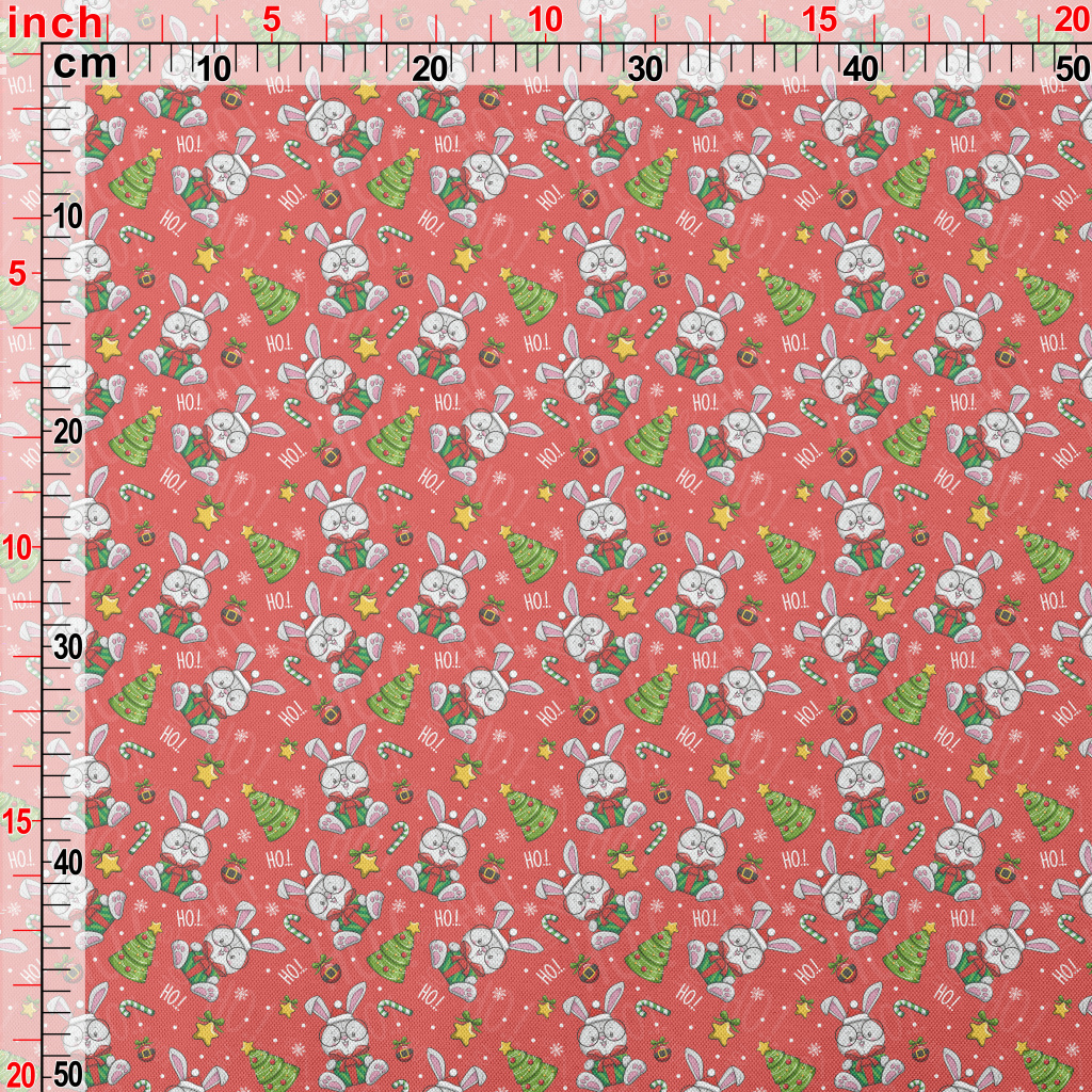 卡通聖誕兔插畫春亞紡(幅寬160公分)