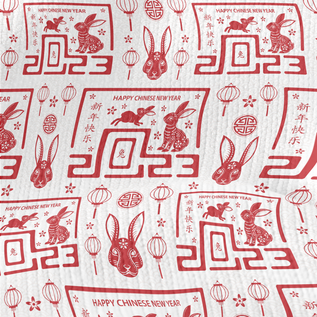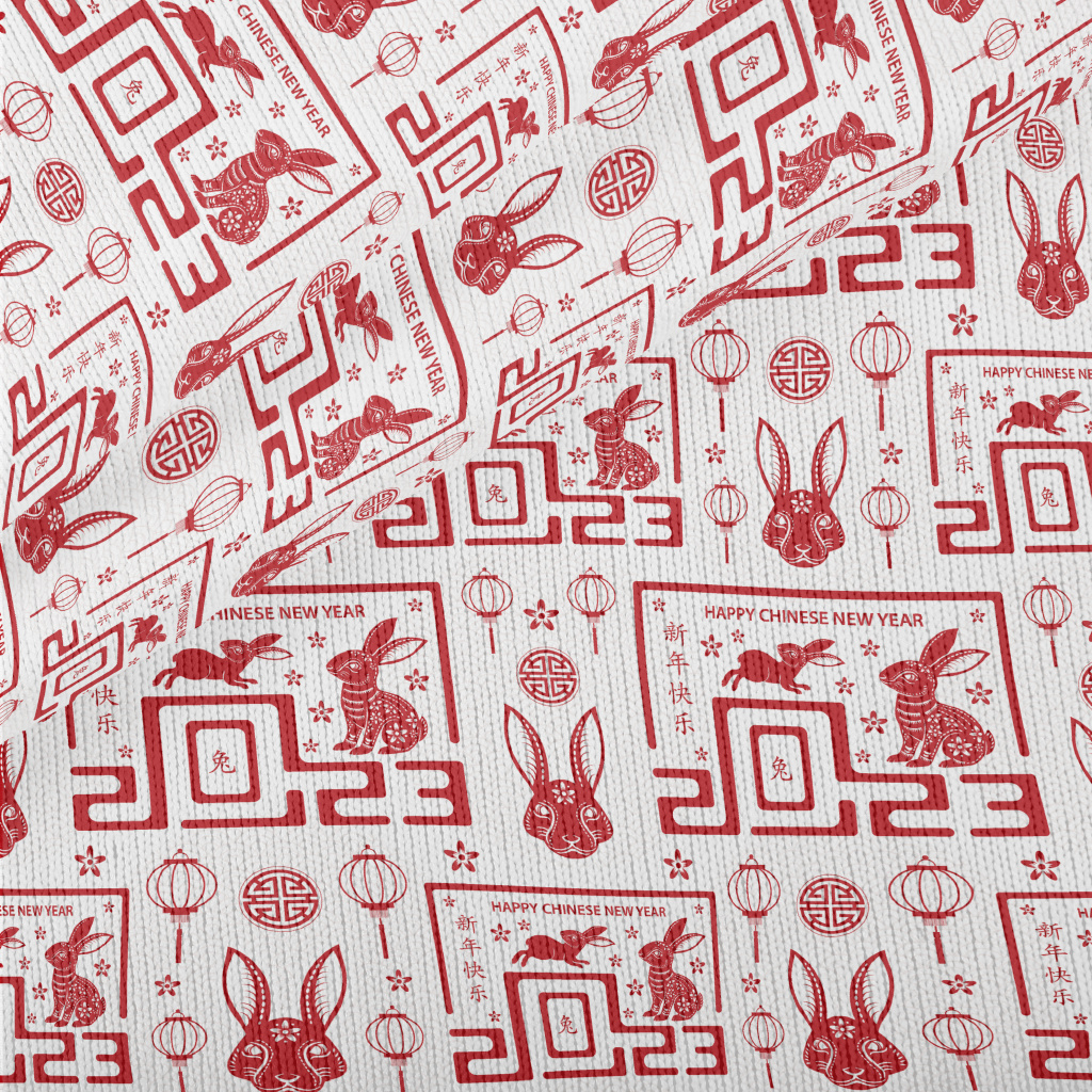 兔年新年快樂仿毛衣布(幅寬150公分)
