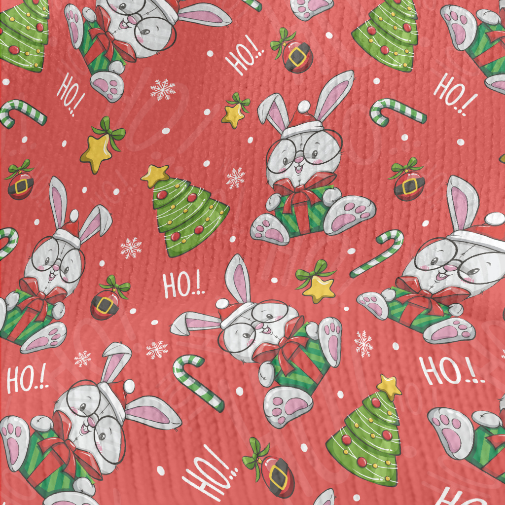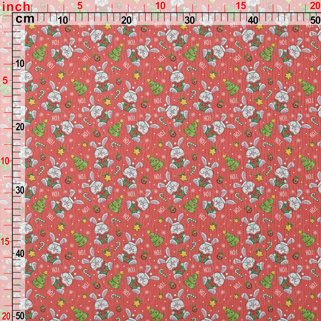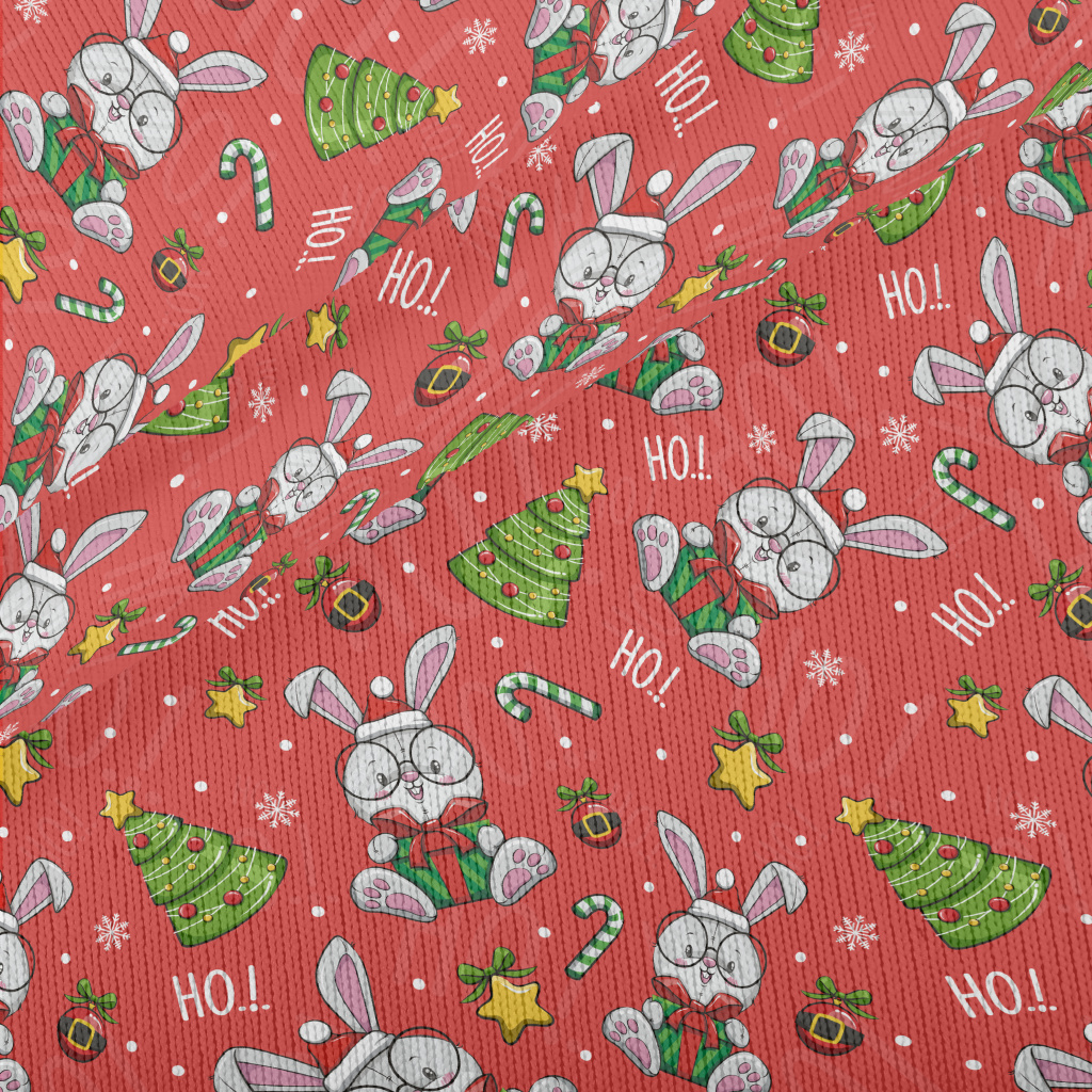 卡通聖誕兔插畫仿毛衣布(幅寬150公分)