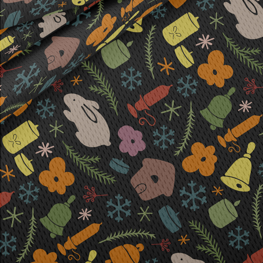 兔子與小鎮聖誕鳥眼布(幅寬160公分)