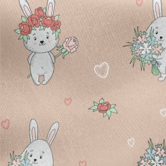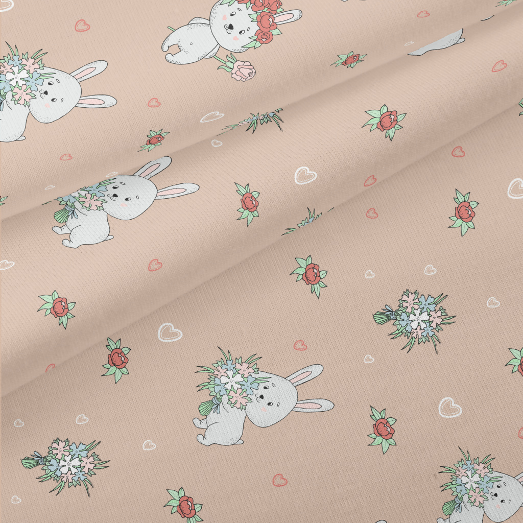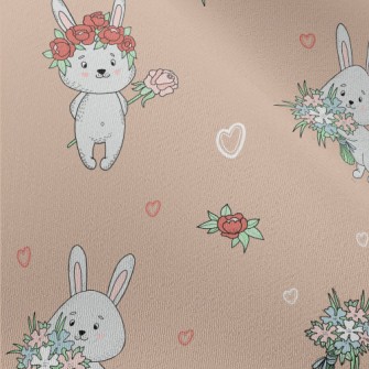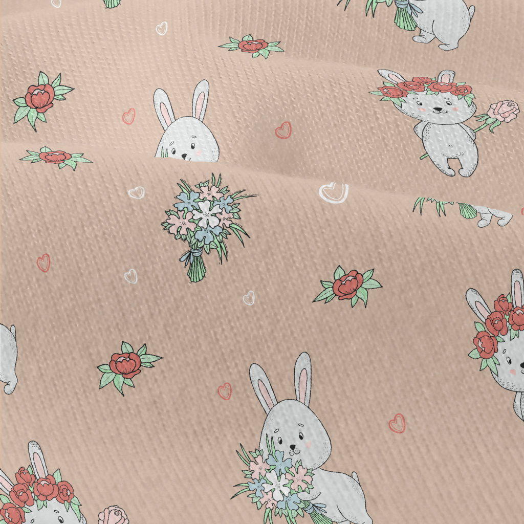 手繪鮮花兔子仿棉布(幅寬150公分)