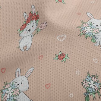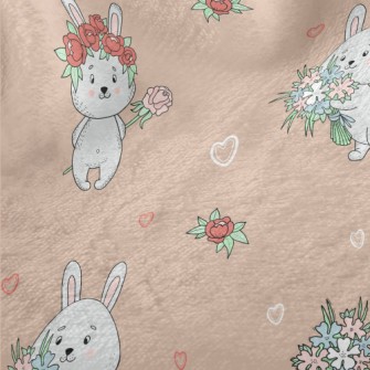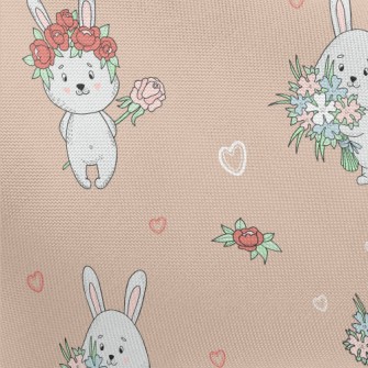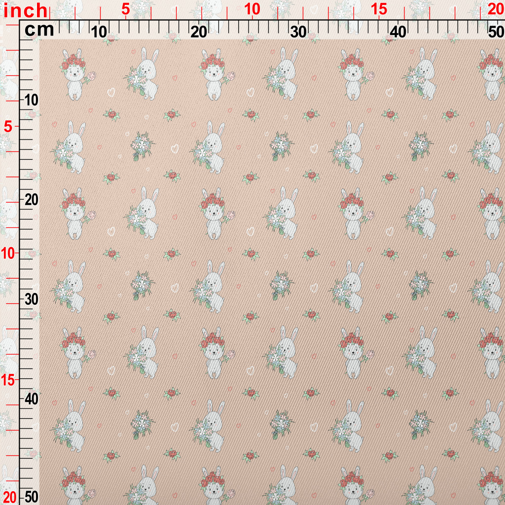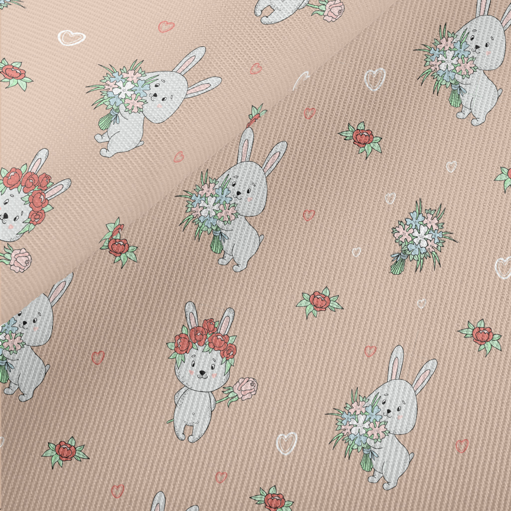 手繪鮮花兔子厚棉布(幅寬150公分)