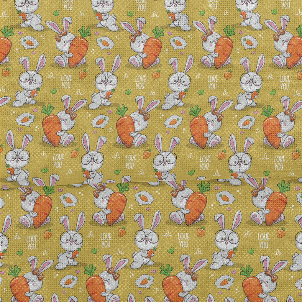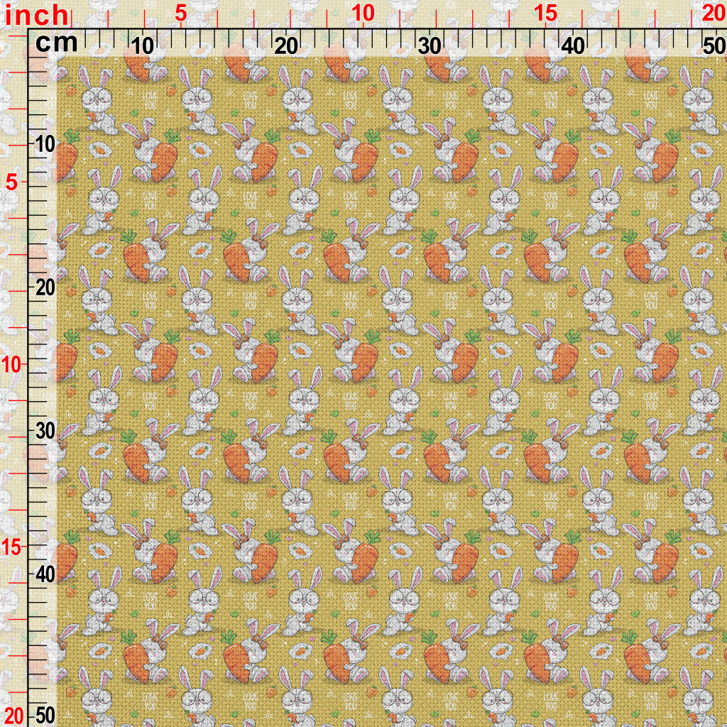 卡通兔子愛蘿蔔麻布(幅寬150公分)