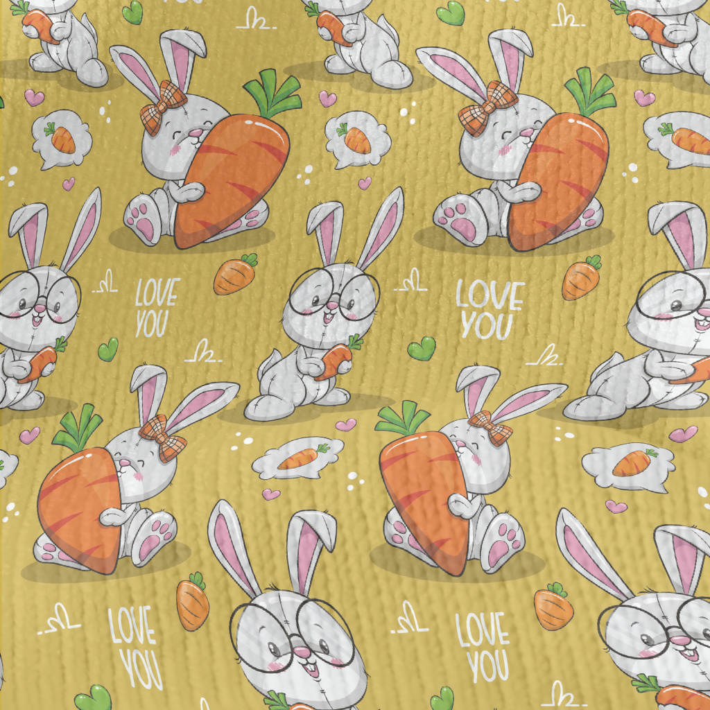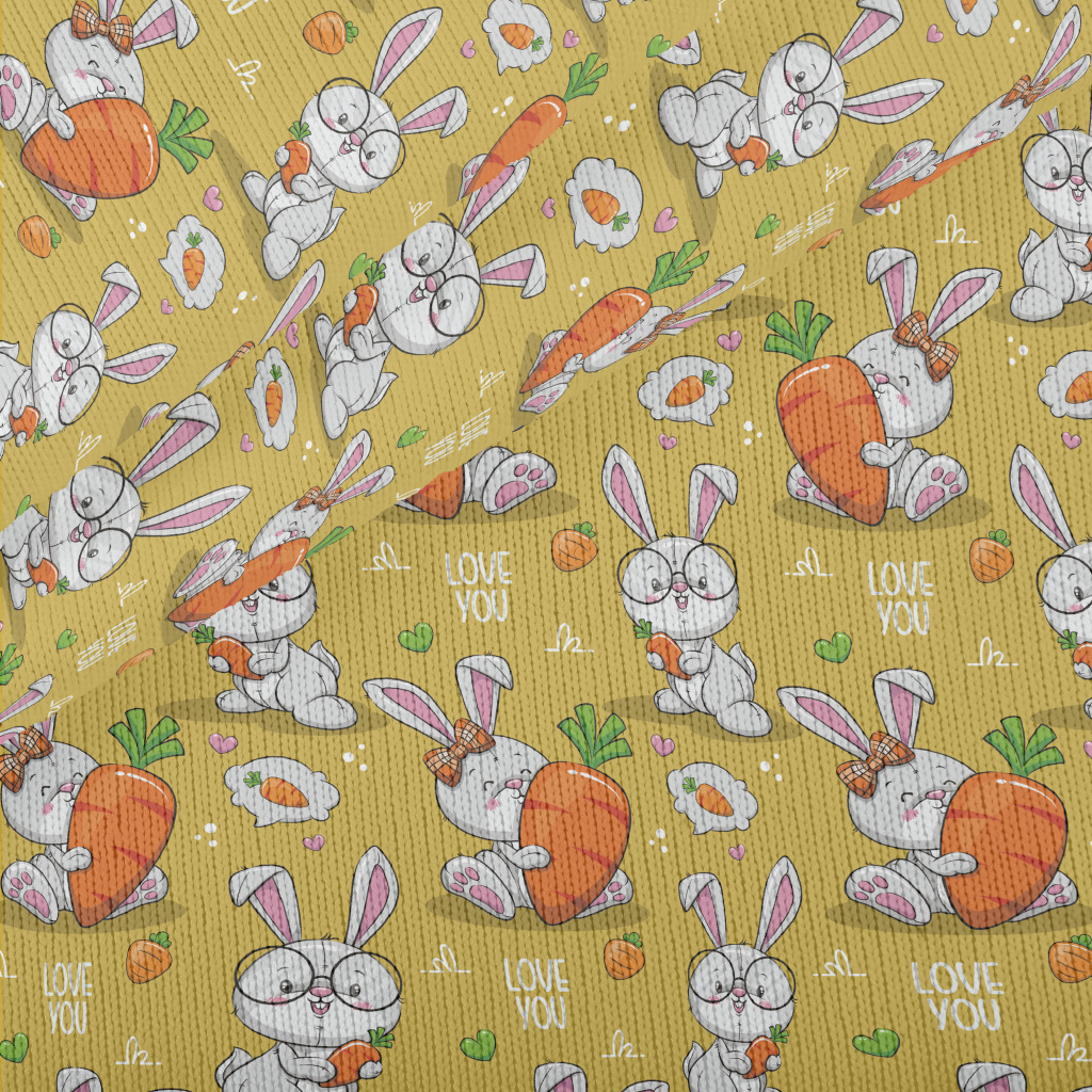 卡通兔子愛蘿蔔仿毛衣布(幅寬150公分)