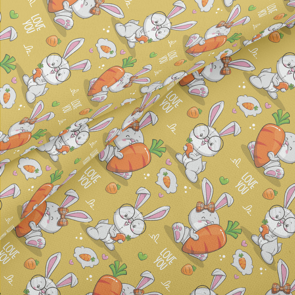 卡通兔子愛蘿蔔薄棉布(幅寬150公分)
