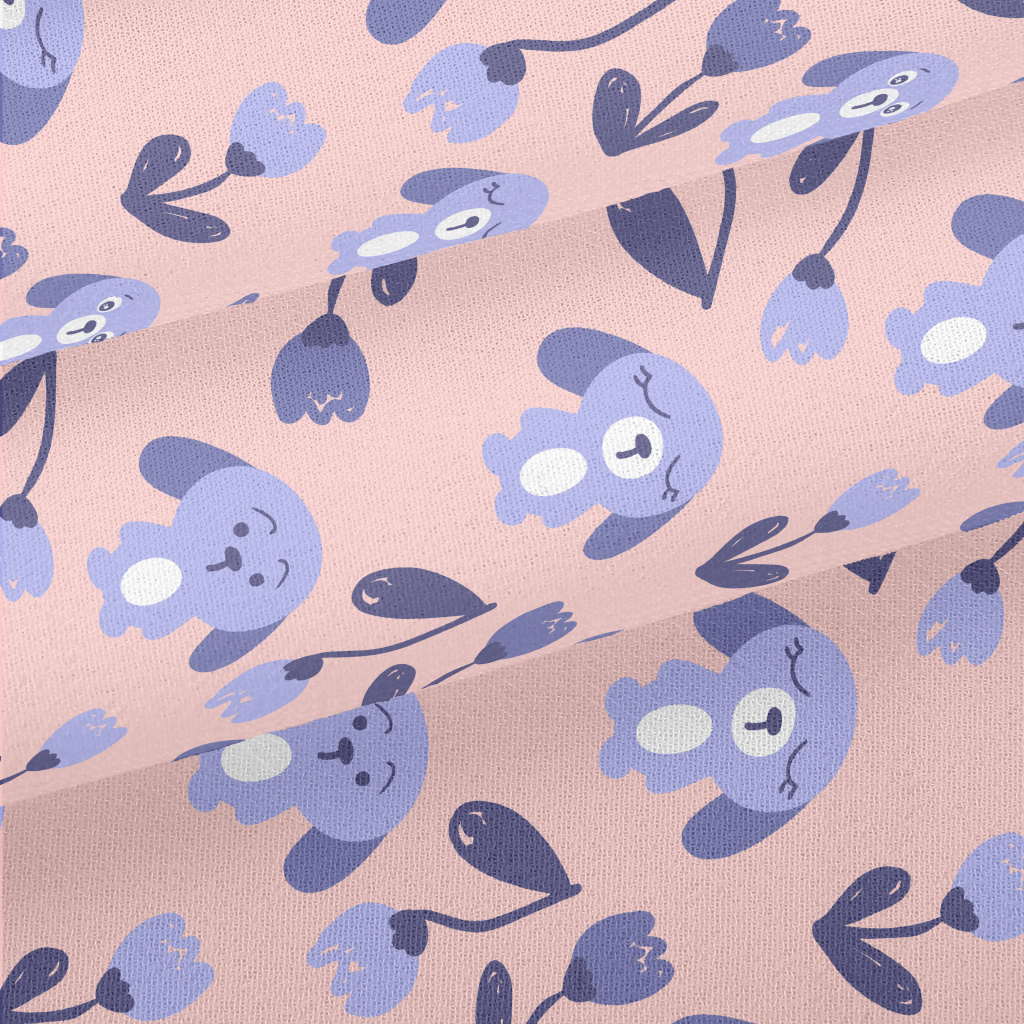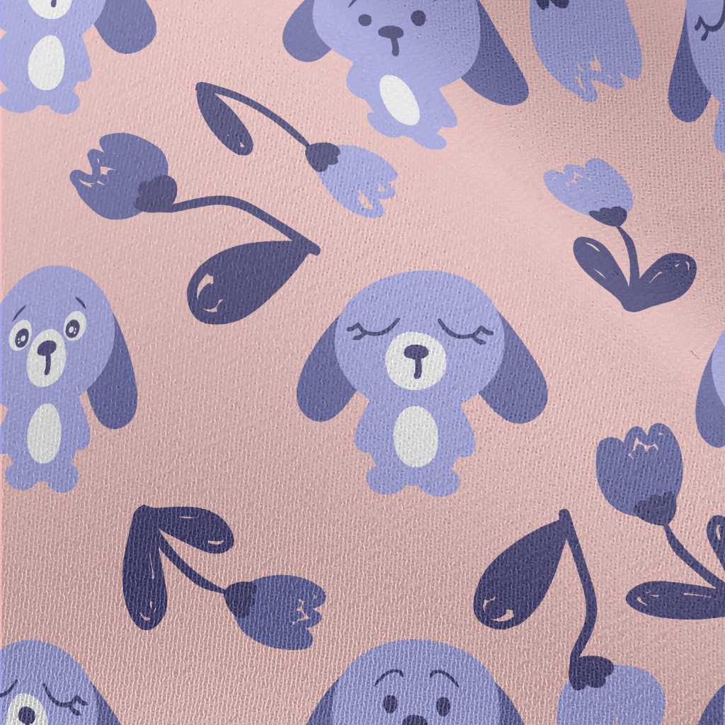 手繪兔子與紫色花朵雪紡布(幅寬150公分)