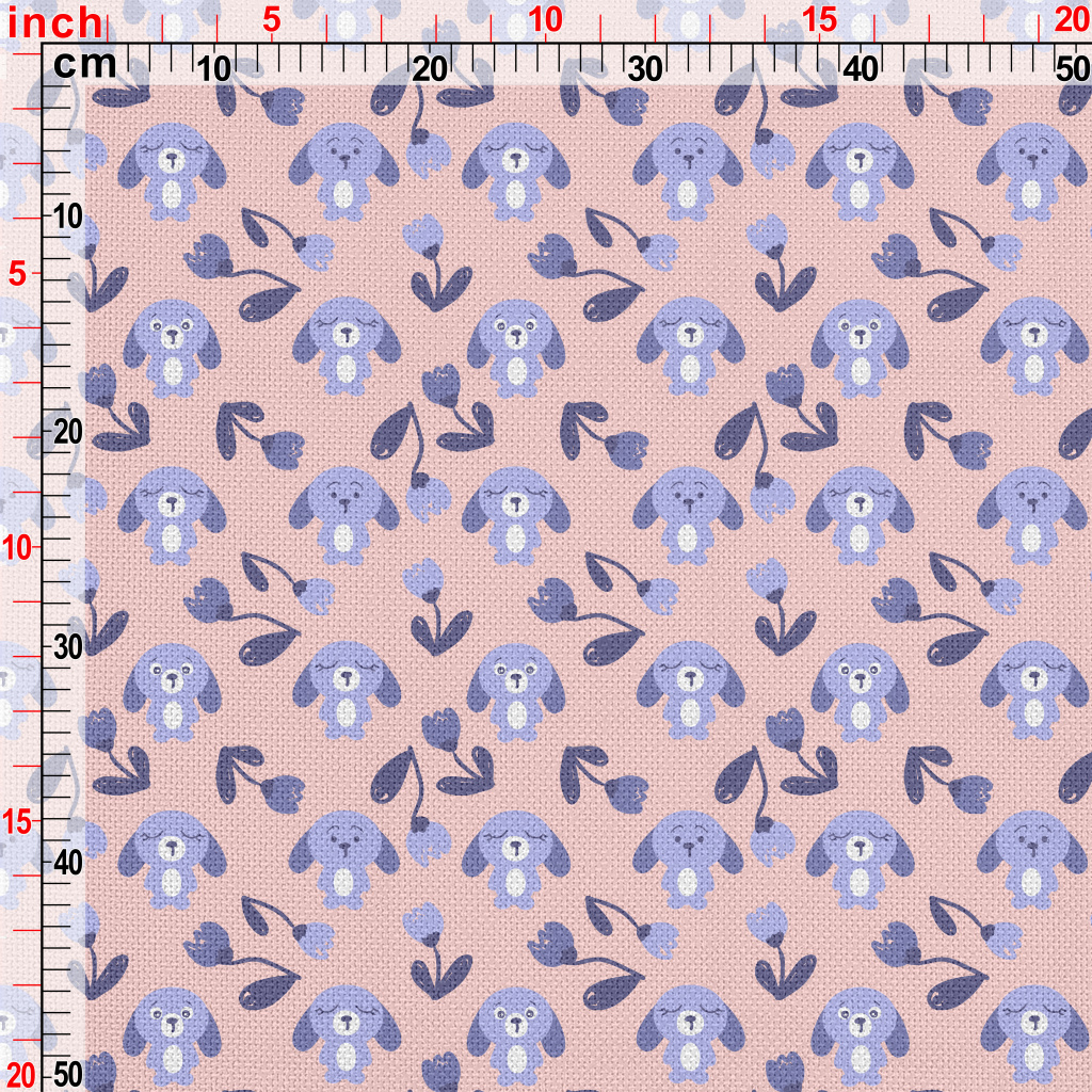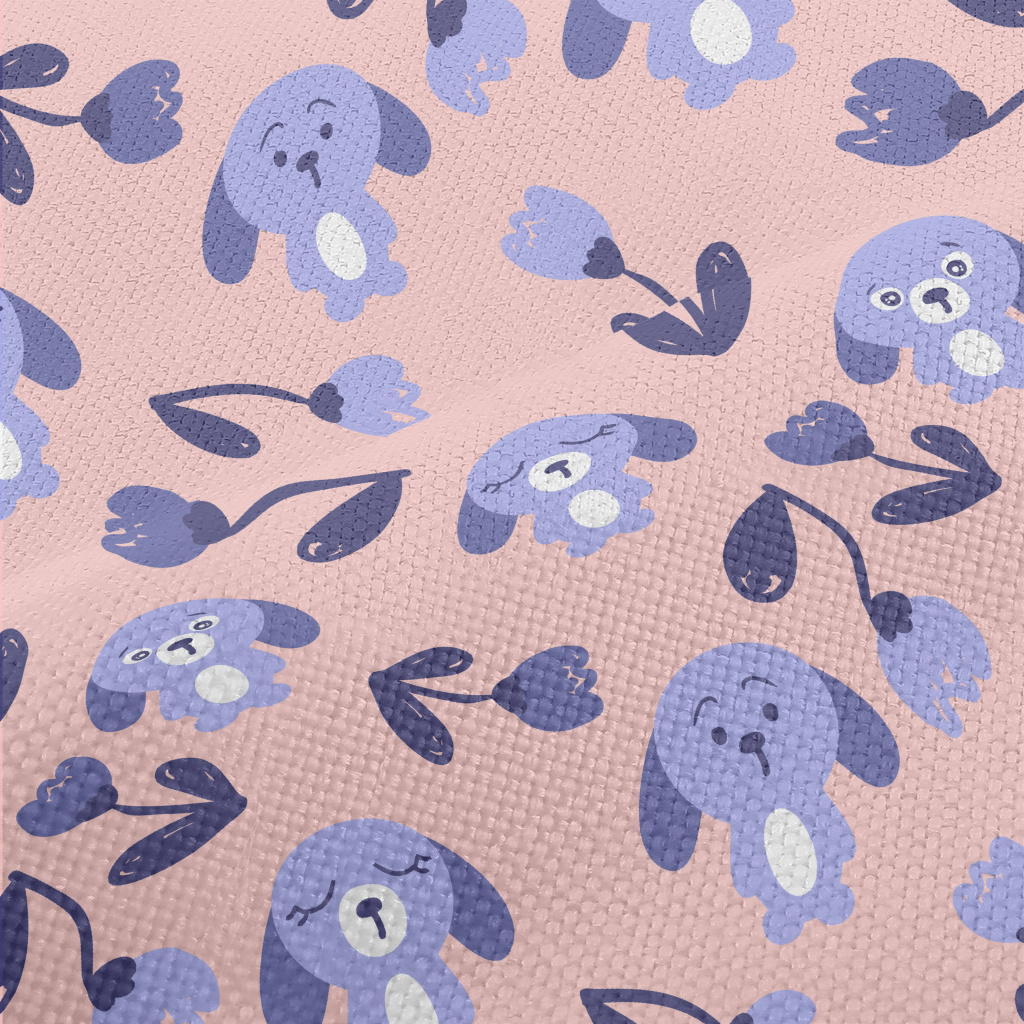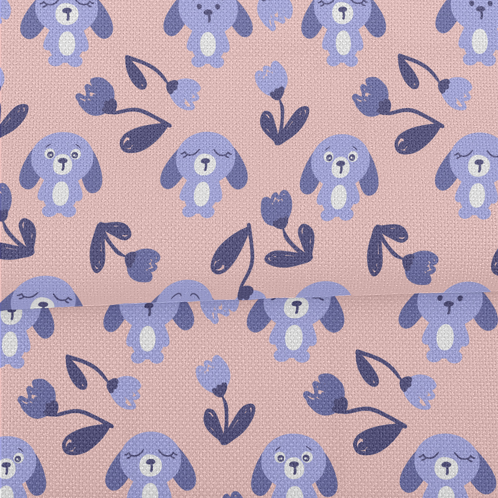 手繪兔子與紫色花朵麻布(幅寬150公分)