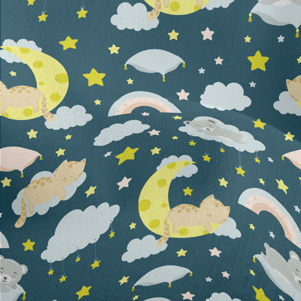 童話星空睡覺動物竹節麻(幅寬150公分)