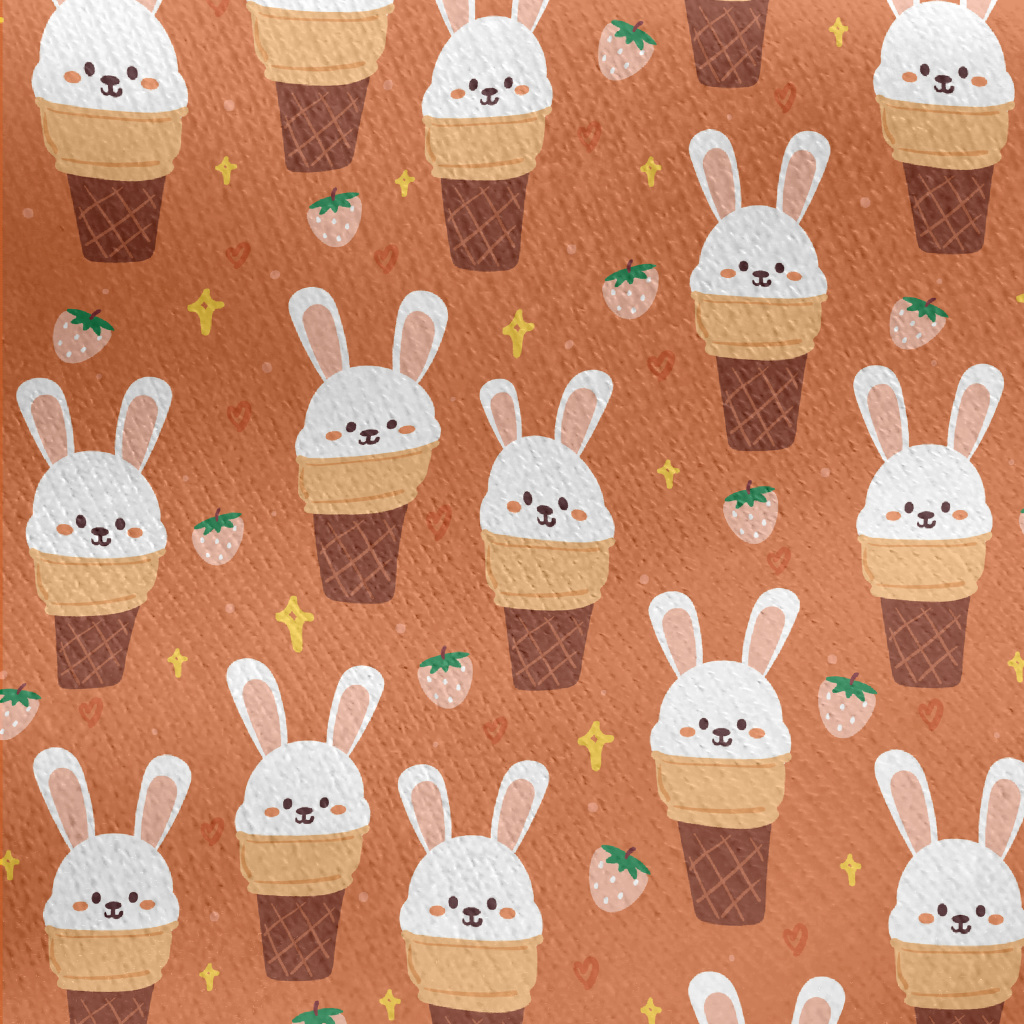 兔子冰淇淋甜筒刷毛布(幅寬150公分)