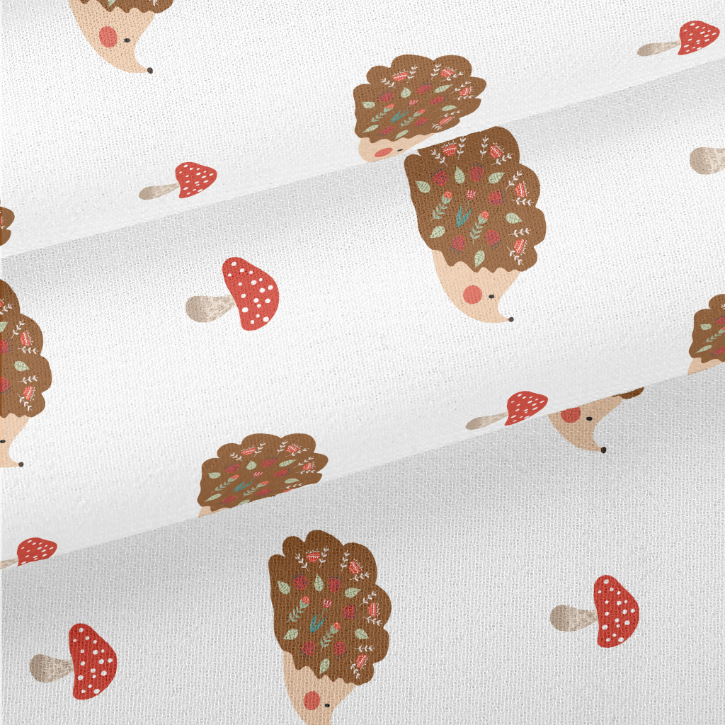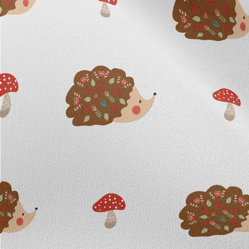 可愛刺蝟與蘑菇雪紡布(幅寬150公分)