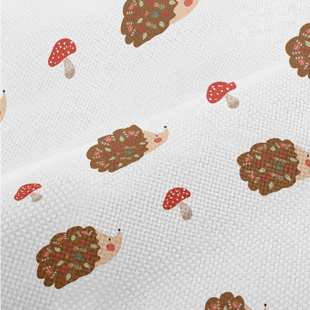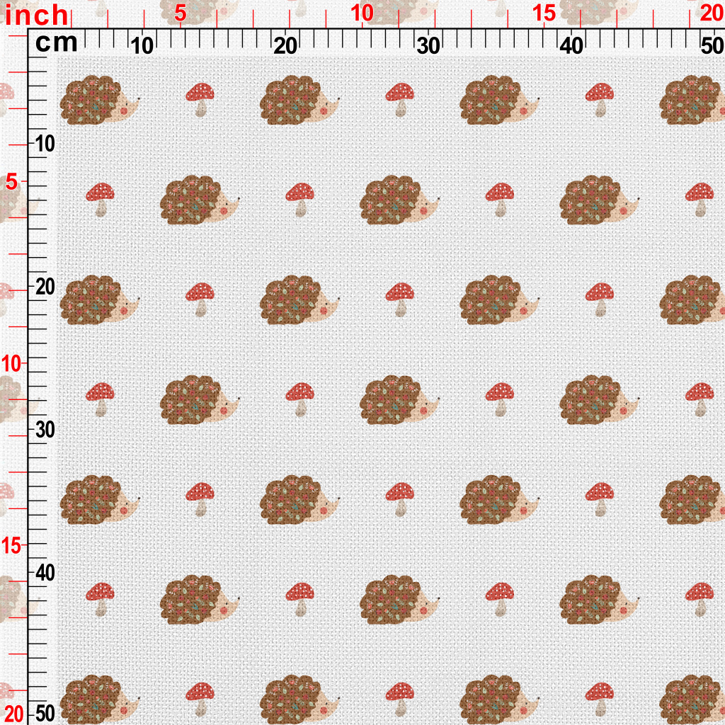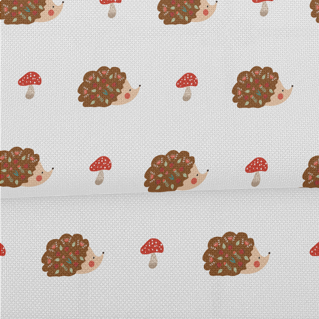 可愛刺蝟與蘑菇麻布(幅寬150公分)