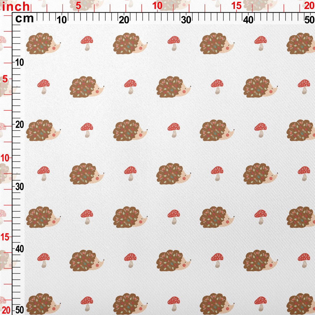 可愛刺蝟與蘑菇斜紋布(幅寬150公分)