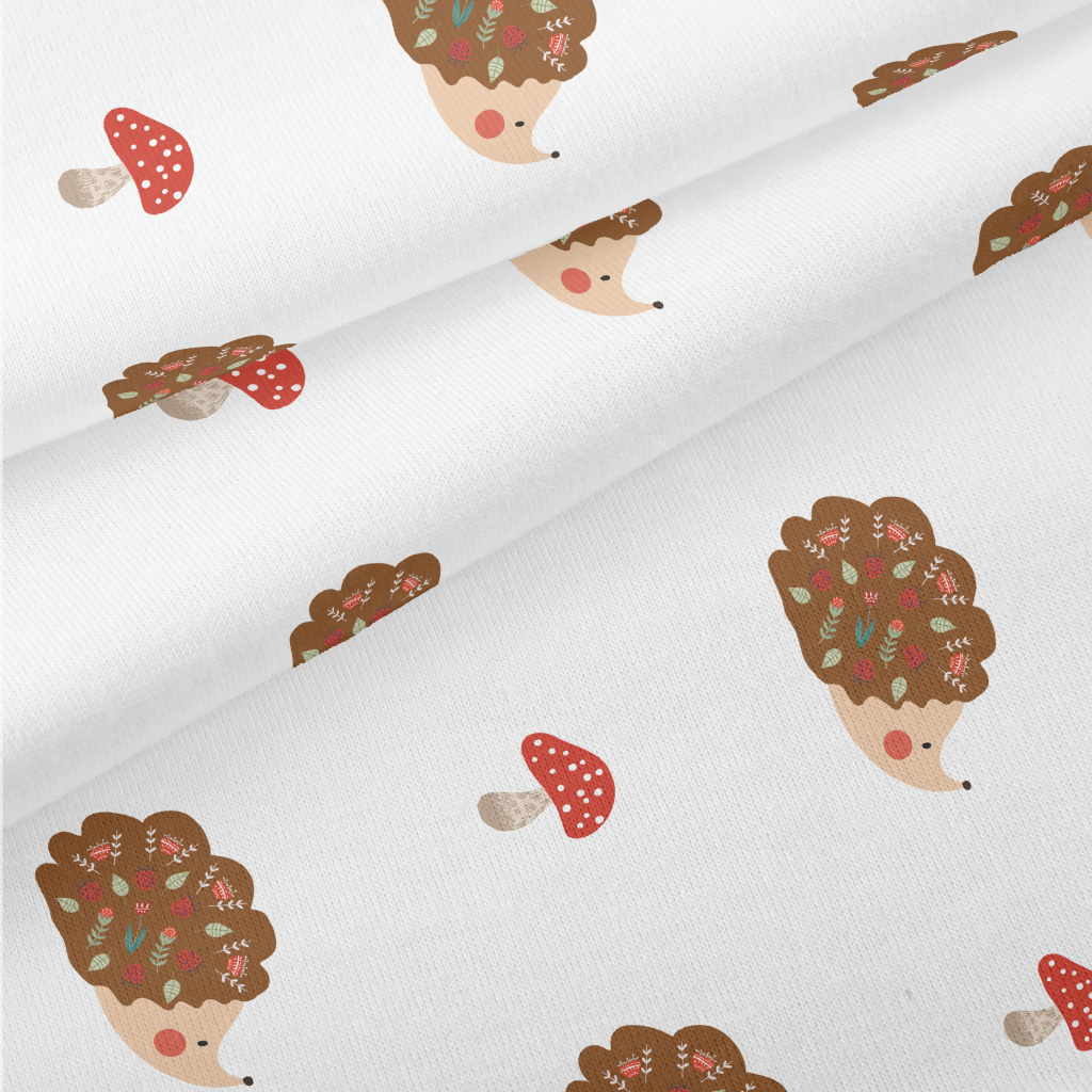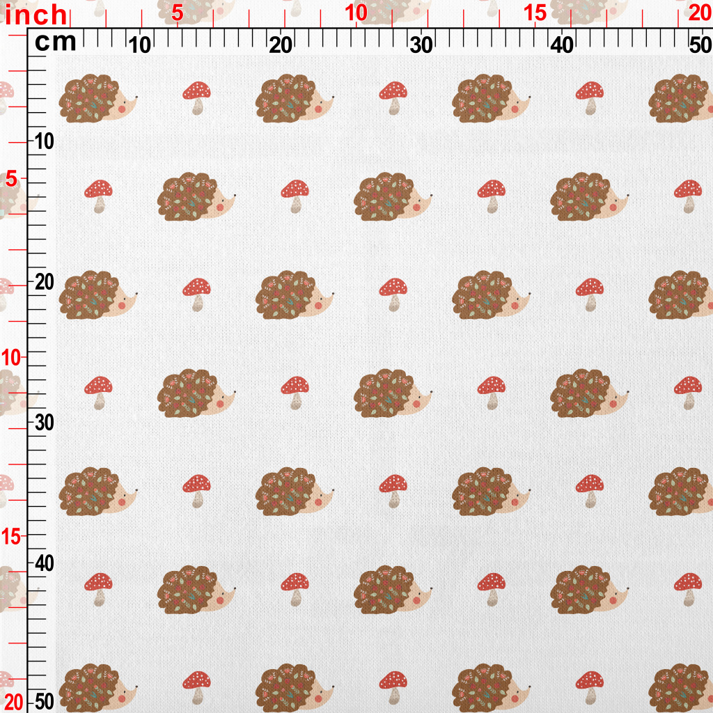 可愛刺蝟與蘑菇仿棉布(幅寬150公分)