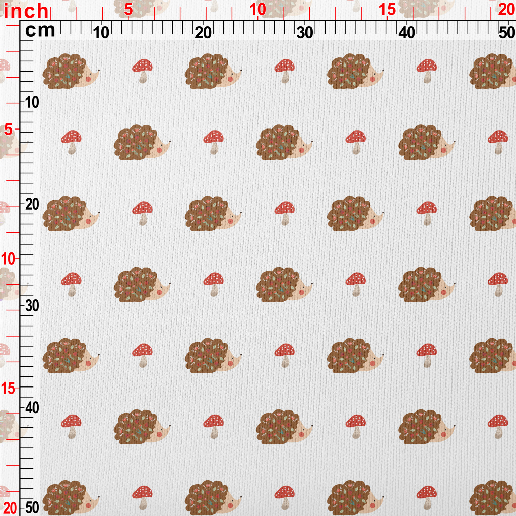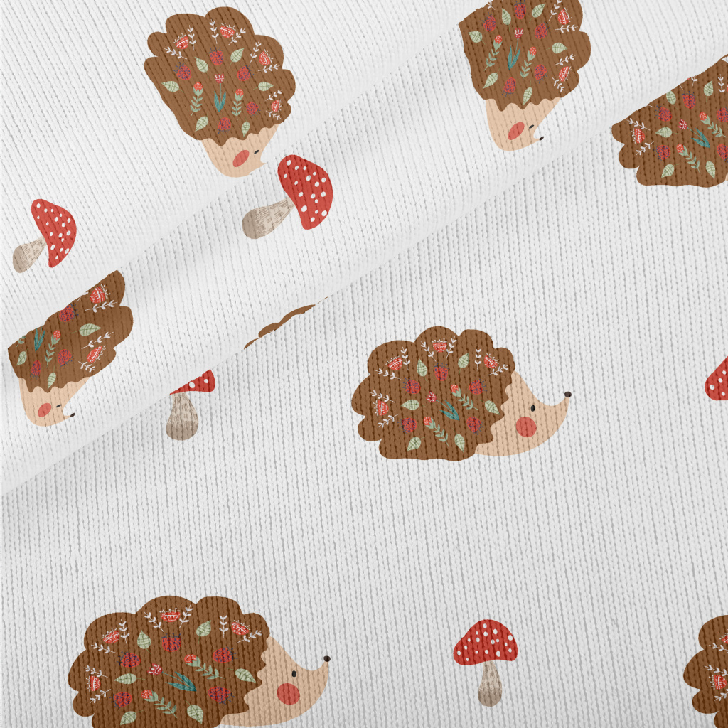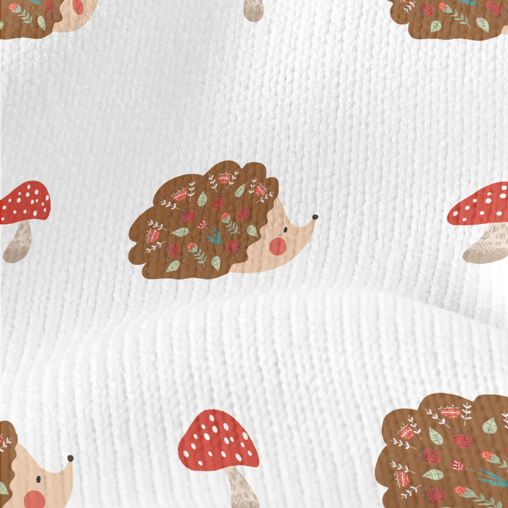 可愛刺蝟與蘑菇仿毛衣布(幅寬150公分)