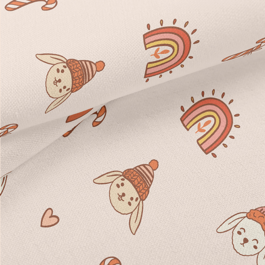 可愛毛帽兔子竹節麻(幅寬150公分)