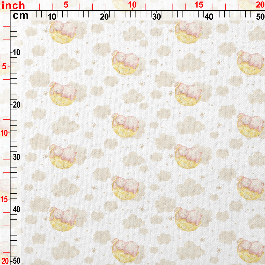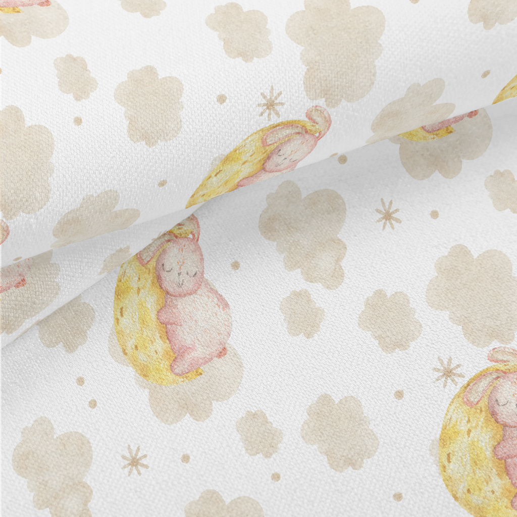 手繪水彩睡覺兔子竹節麻(幅寬150公分)