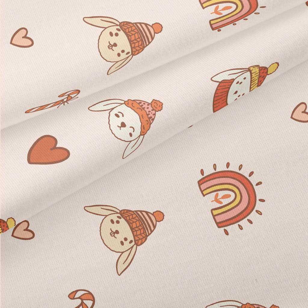 可愛毛帽兔子仿棉布(幅寬150公分)