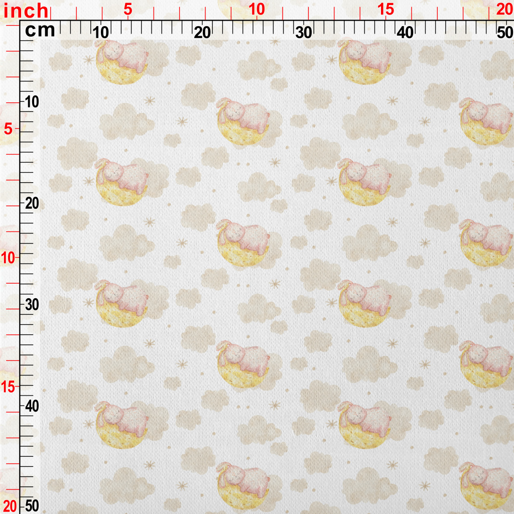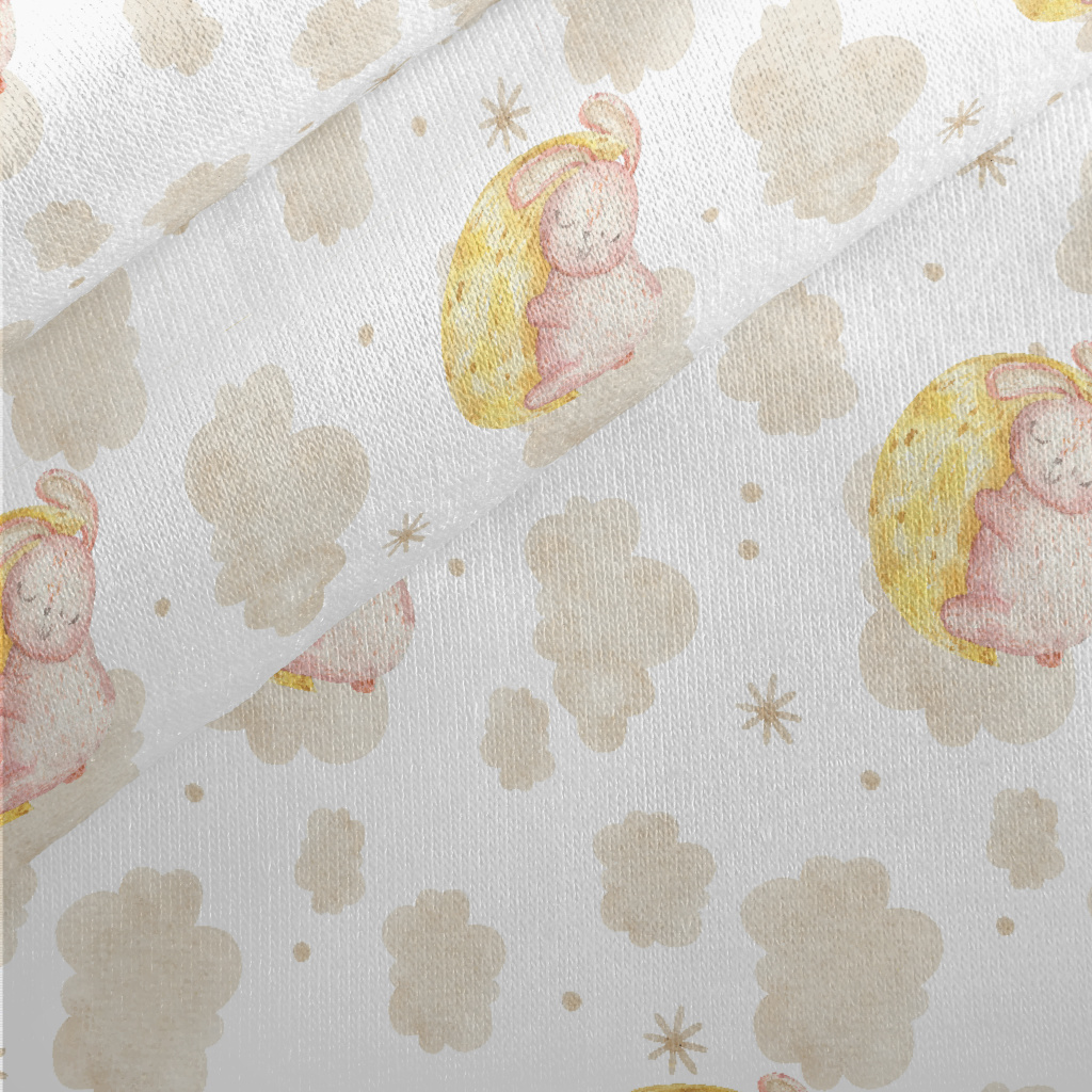 手繪水彩睡覺兔子刷毛布(幅寬150公分)