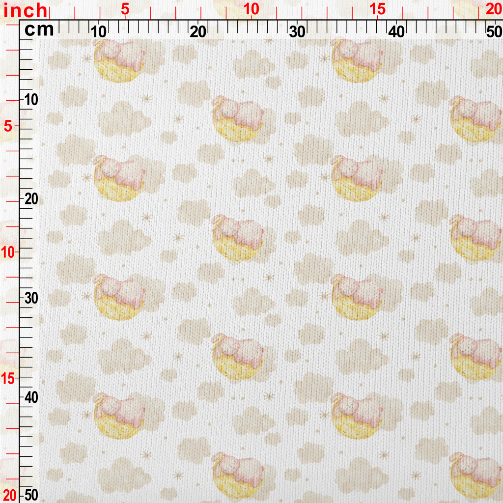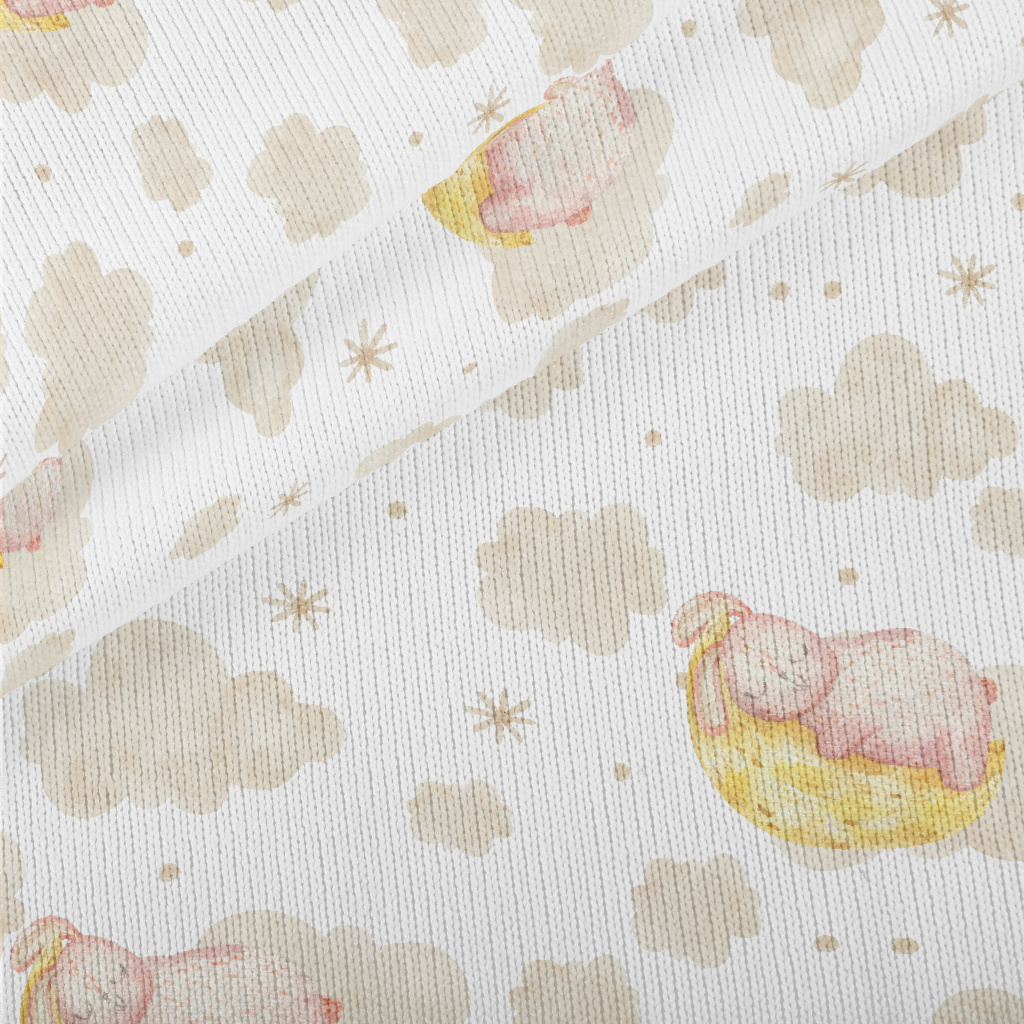 手繪水彩睡覺兔子仿毛衣布(幅寬150公分)