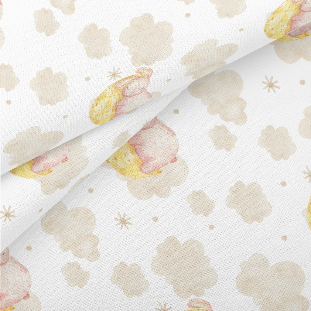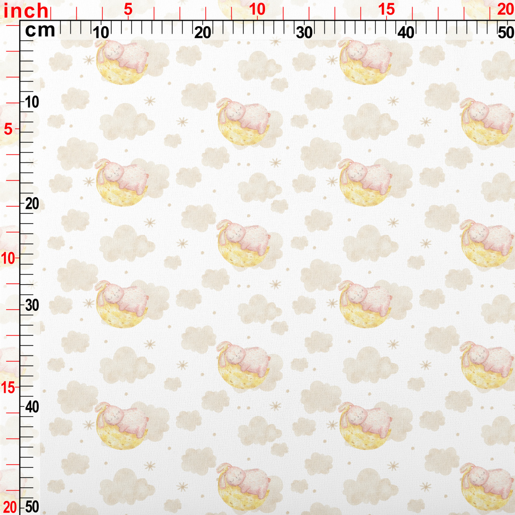 手繪水彩睡覺兔子薄棉布(幅寬150公分)