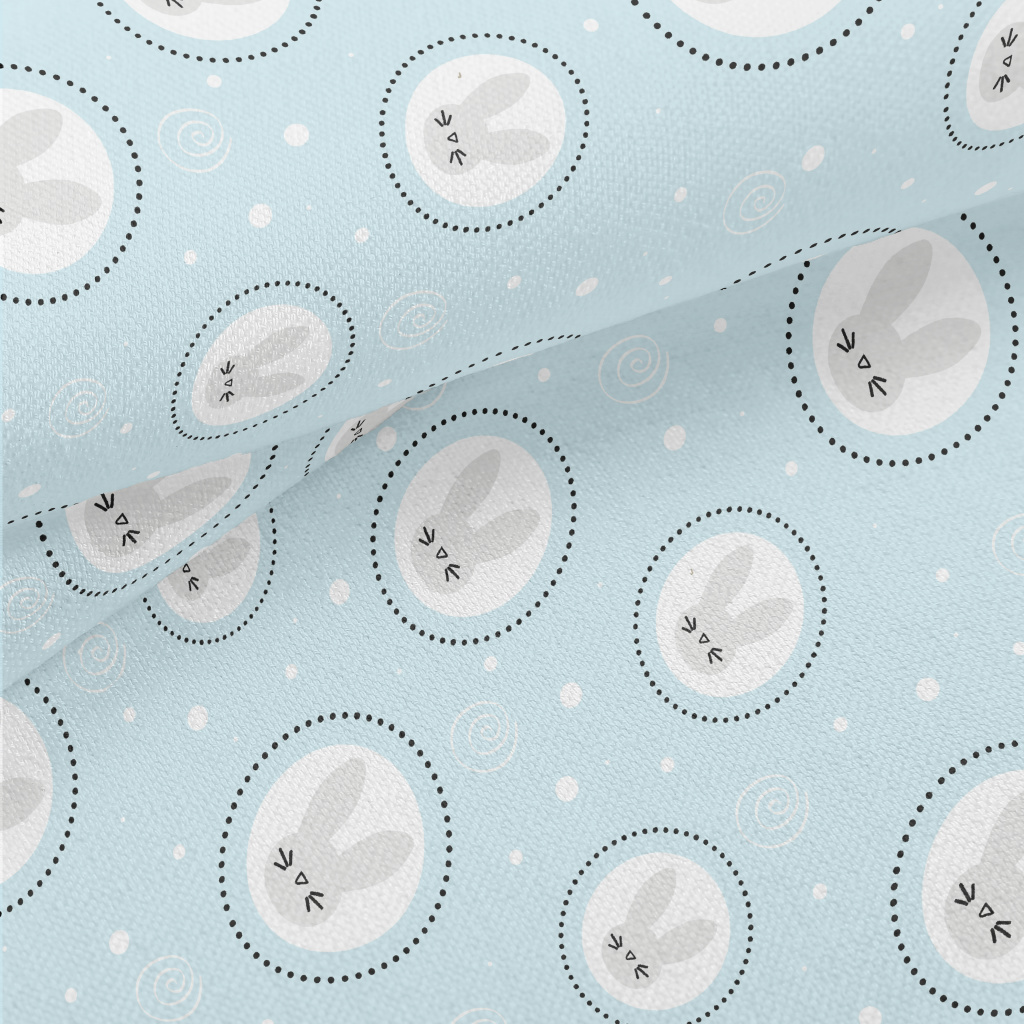 可愛兔子頭裝飾竹節麻(幅寬150公分)