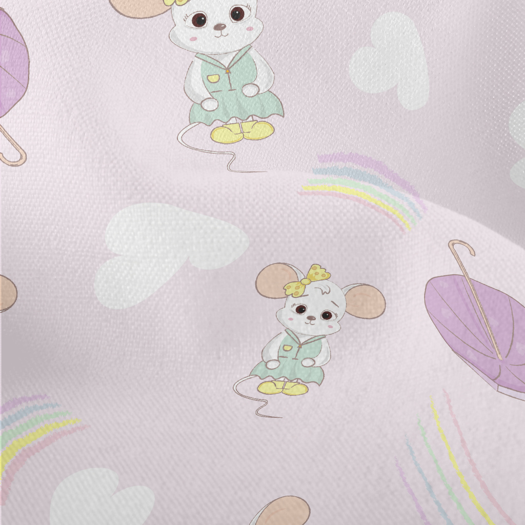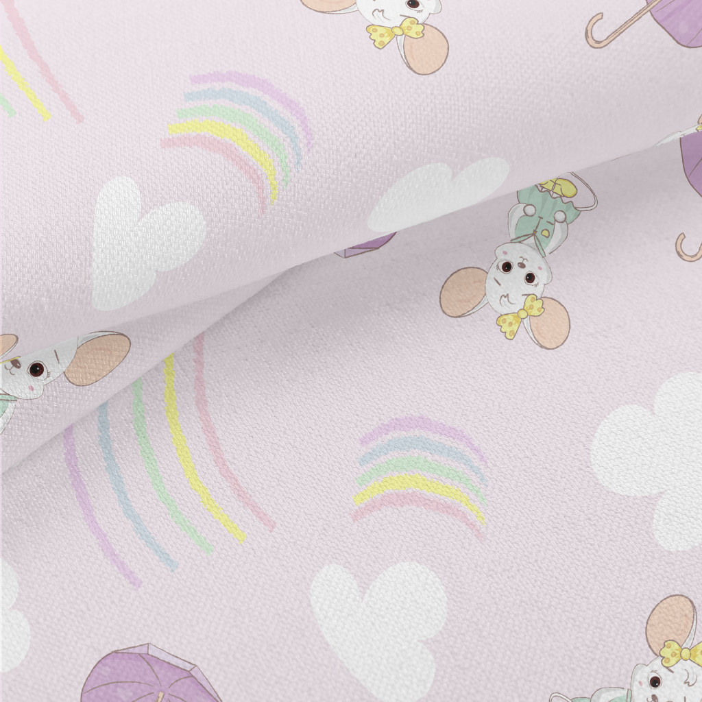 優雅卡通老鼠竹節麻(幅寬150公分)