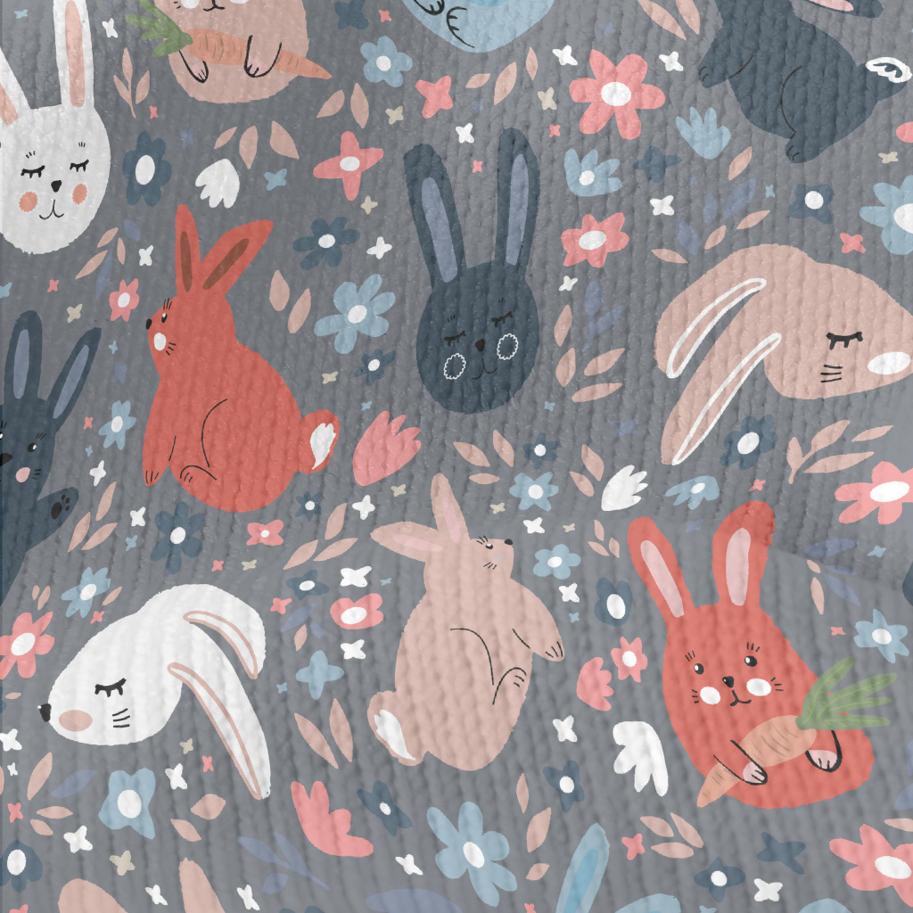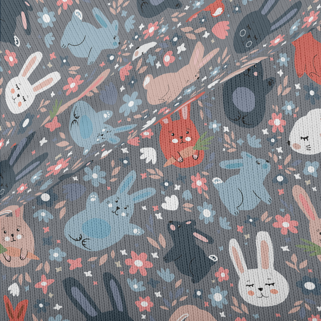 彩色塗鴉兔子仿毛衣布(幅寬150公分)