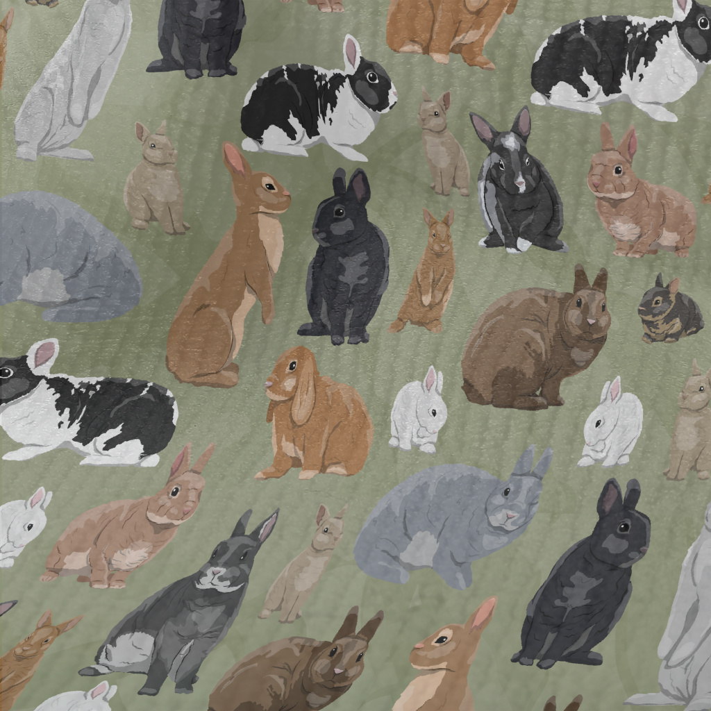 手繪寵物兔子毛巾布(幅寬160公分)