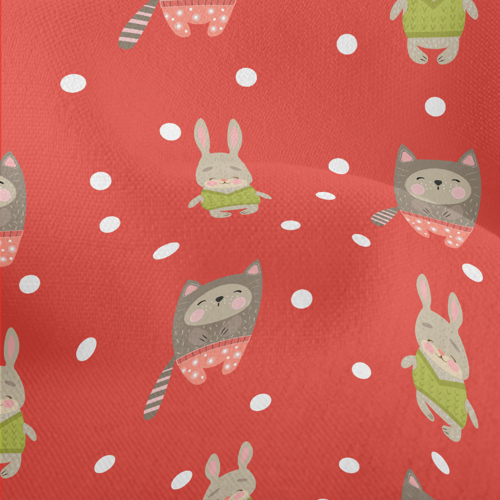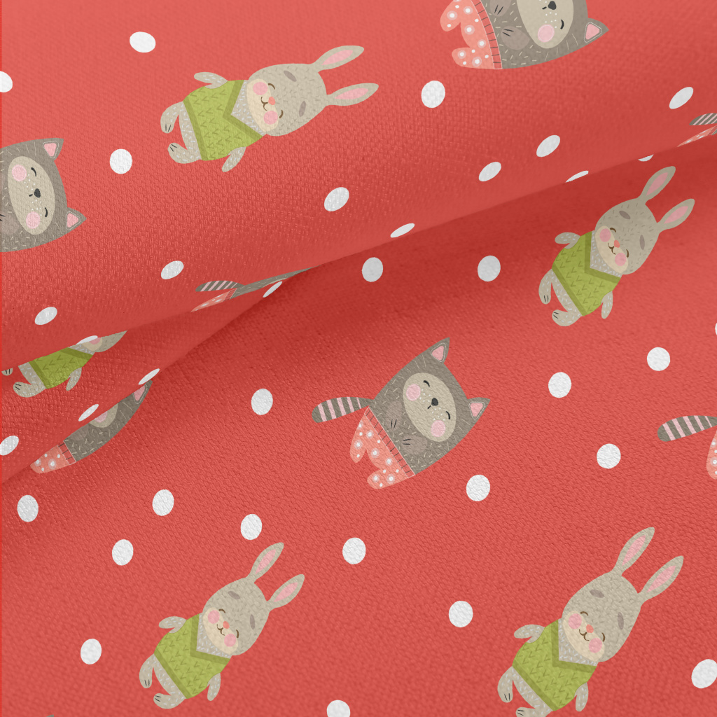 冬季可愛動物竹節麻(幅寬150公分)