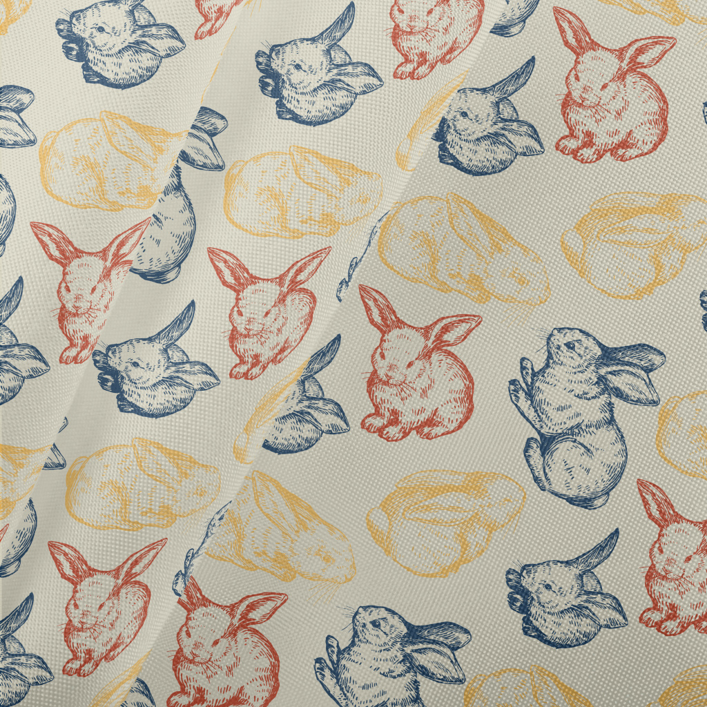 復古手繪兔子春亞紡(幅寬160公分)