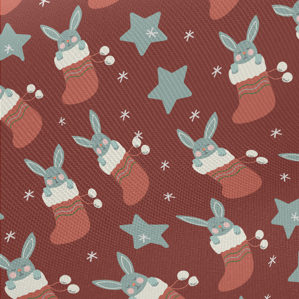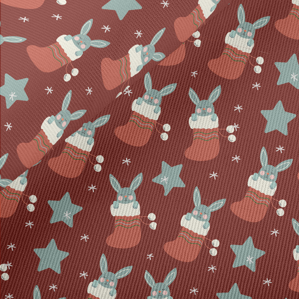 聖誕襪睡覺兔子厚棉布(幅寬150公分)