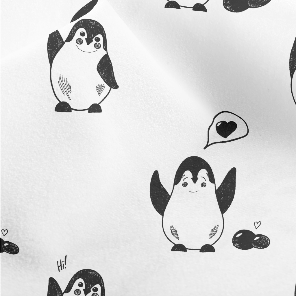 手繪黑白企鵝水晶絨(幅寬160公分)