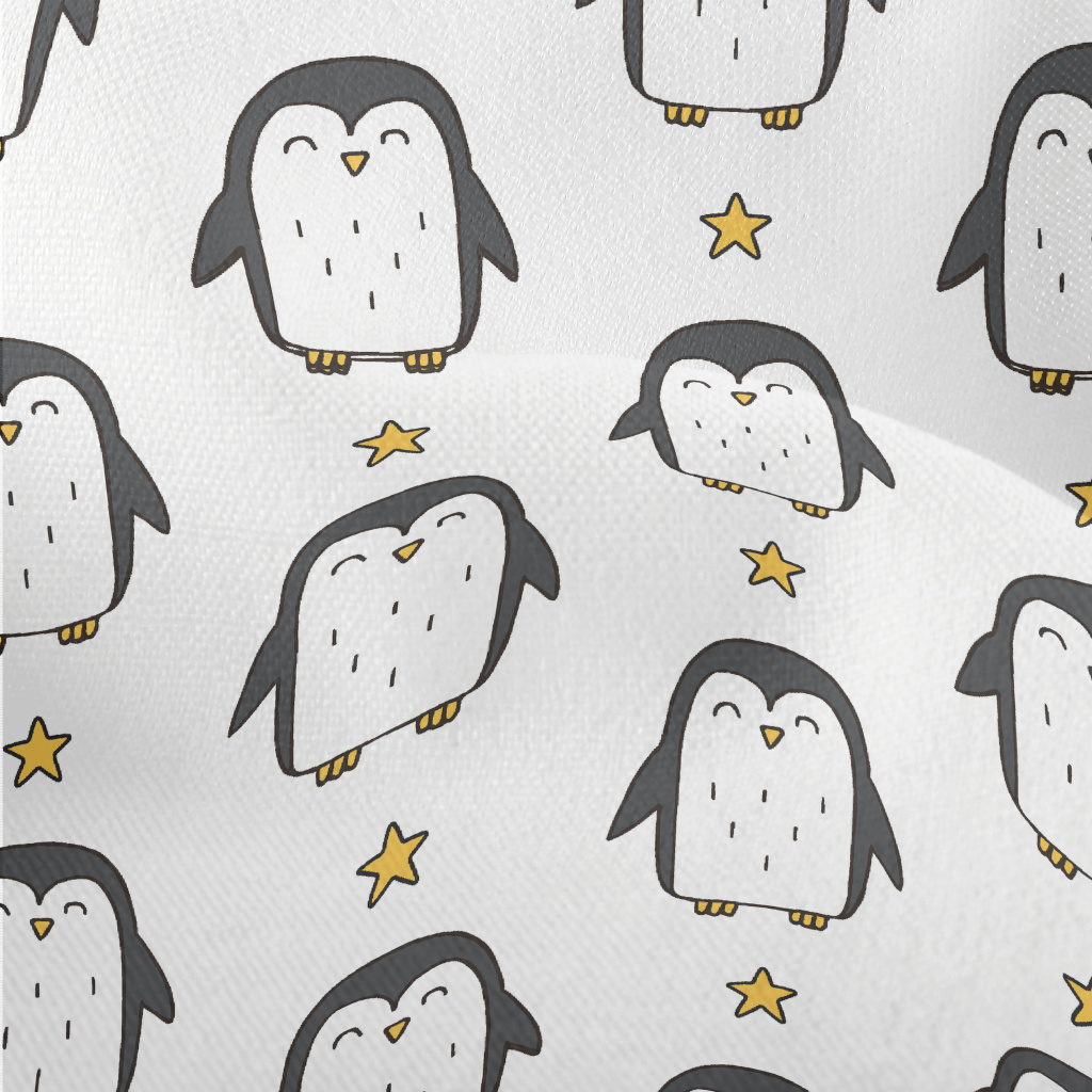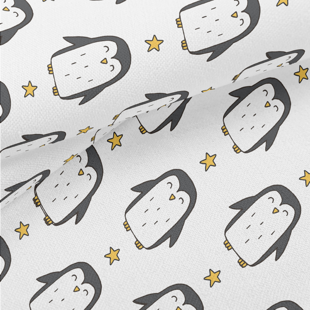 企鵝與星星插畫竹節麻(幅寬150公分)