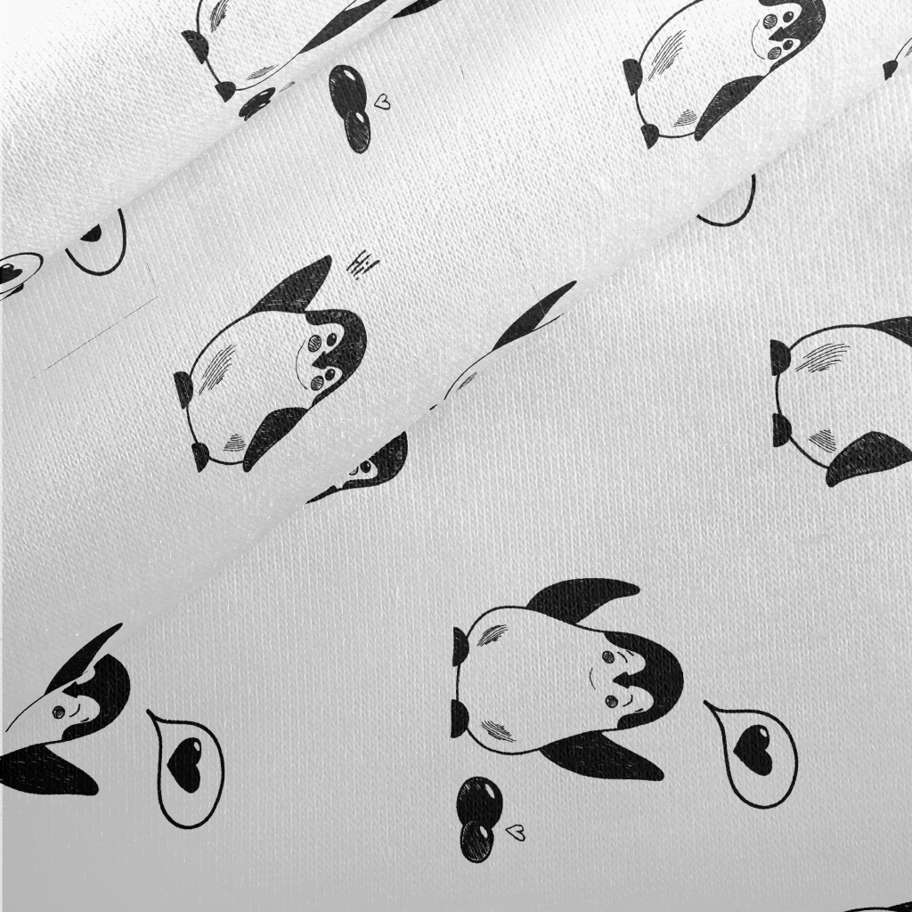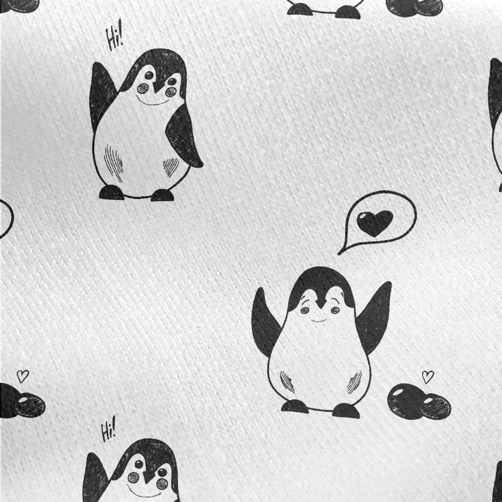 手繪黑白企鵝刷毛布(幅寬150公分)