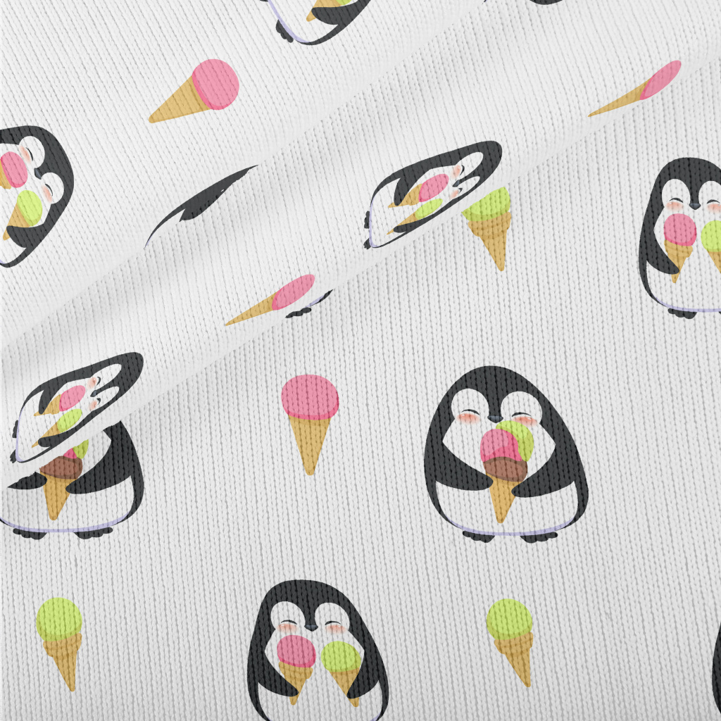 企鵝吃三色甜筒仿毛衣布(幅寬150公分)