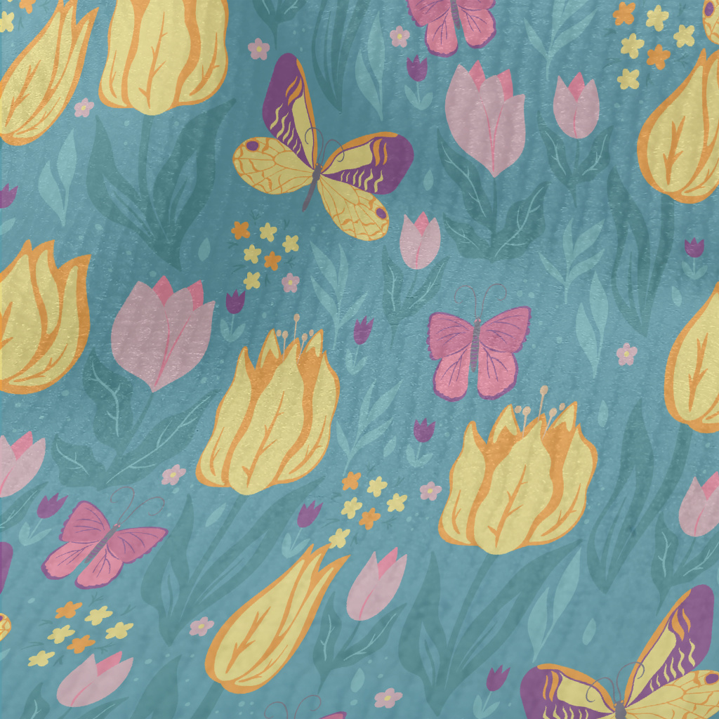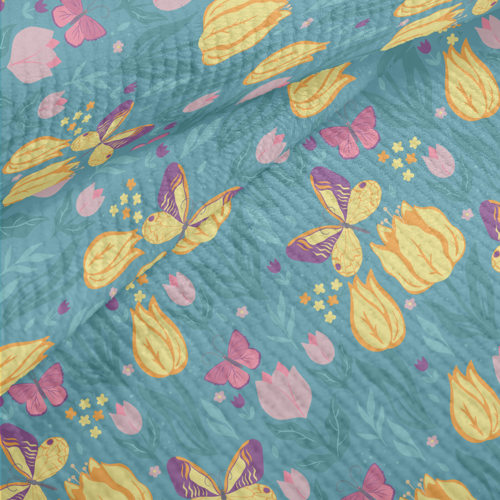 蝴蝶鬱金香花園毛巾布(幅寬160公分)