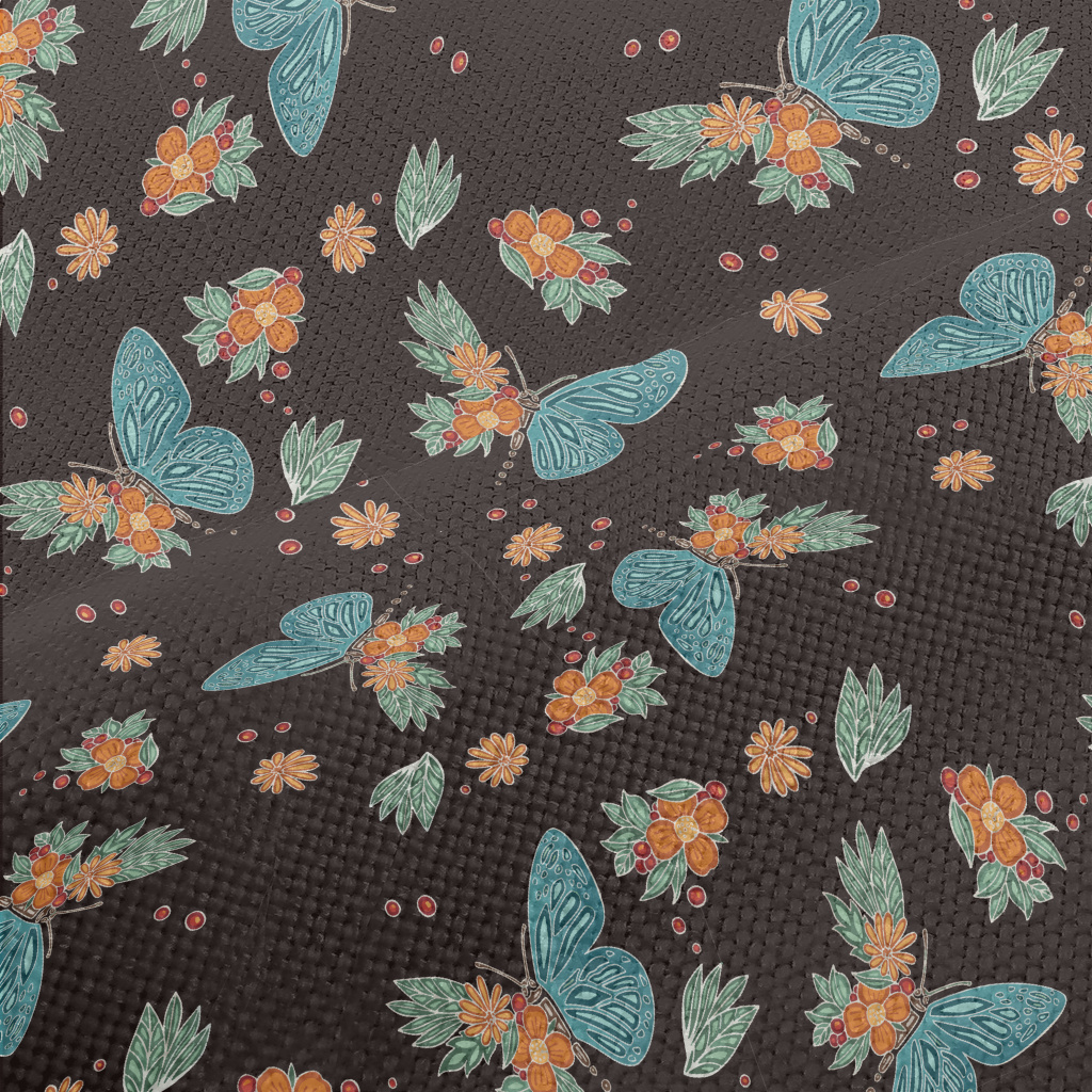 停在花朵上蝴蝶麻布(幅寬150公分)