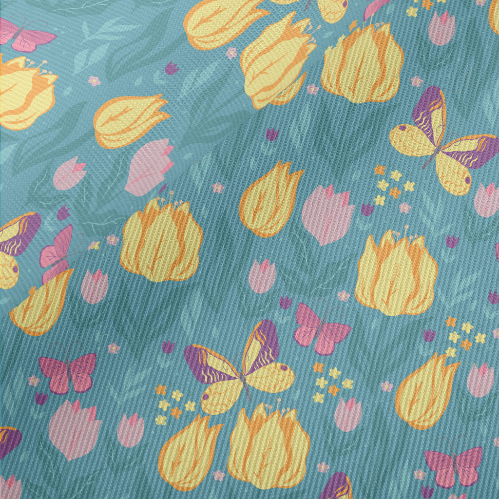 蝴蝶鬱金香花園斜紋布(幅寬150公分)