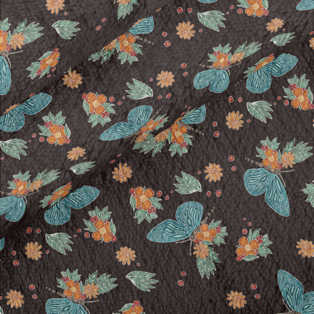 停在花朵上蝴蝶法蘭絨(幅寬150公分)