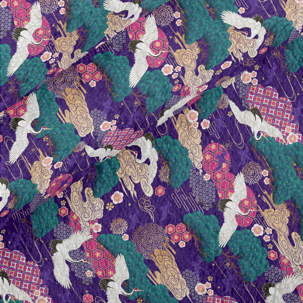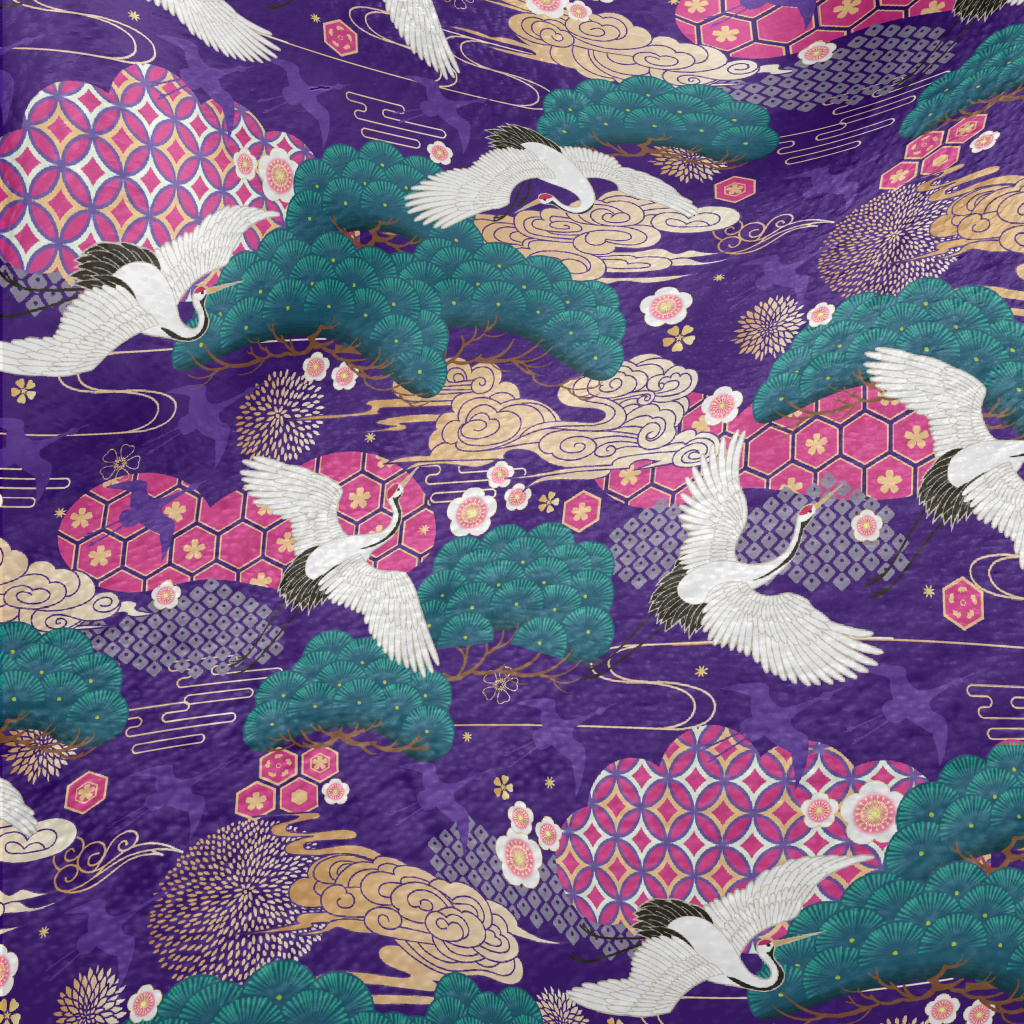日式風格白鶴法蘭絨(幅寬150公分)