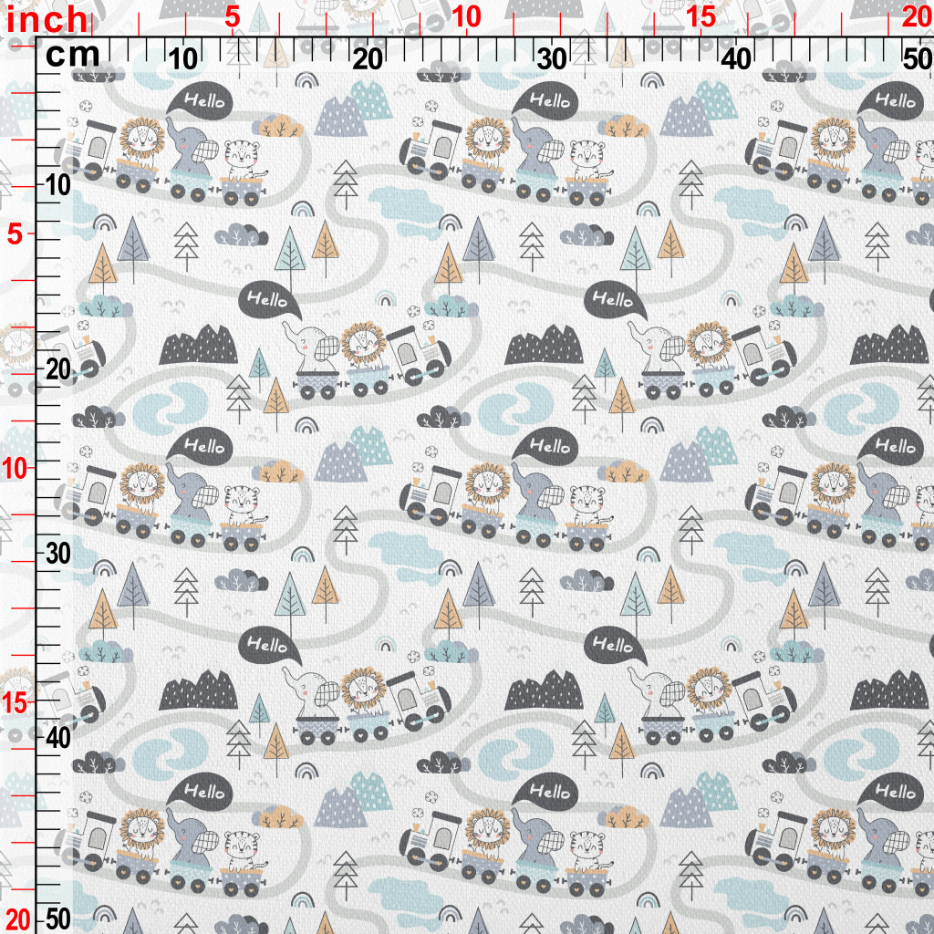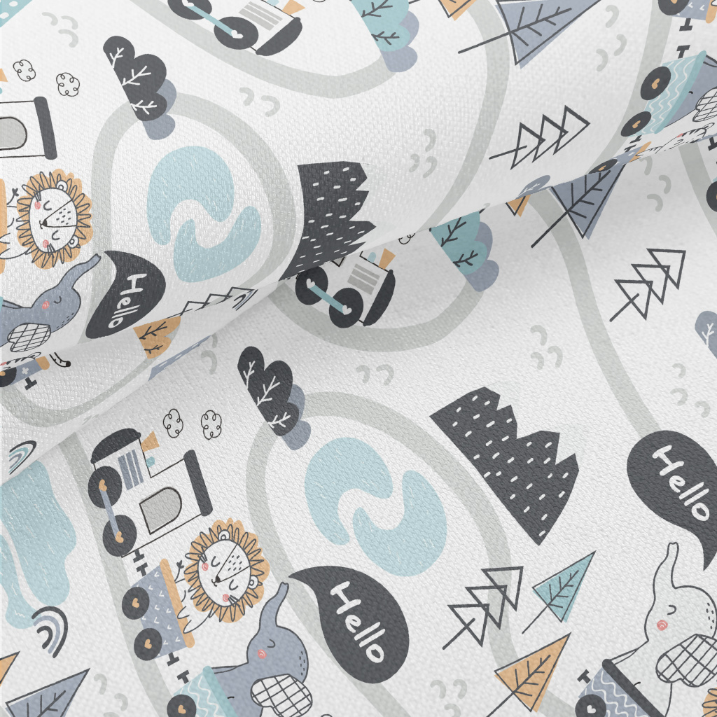 森林動物火車竹節麻(幅寬150公分)