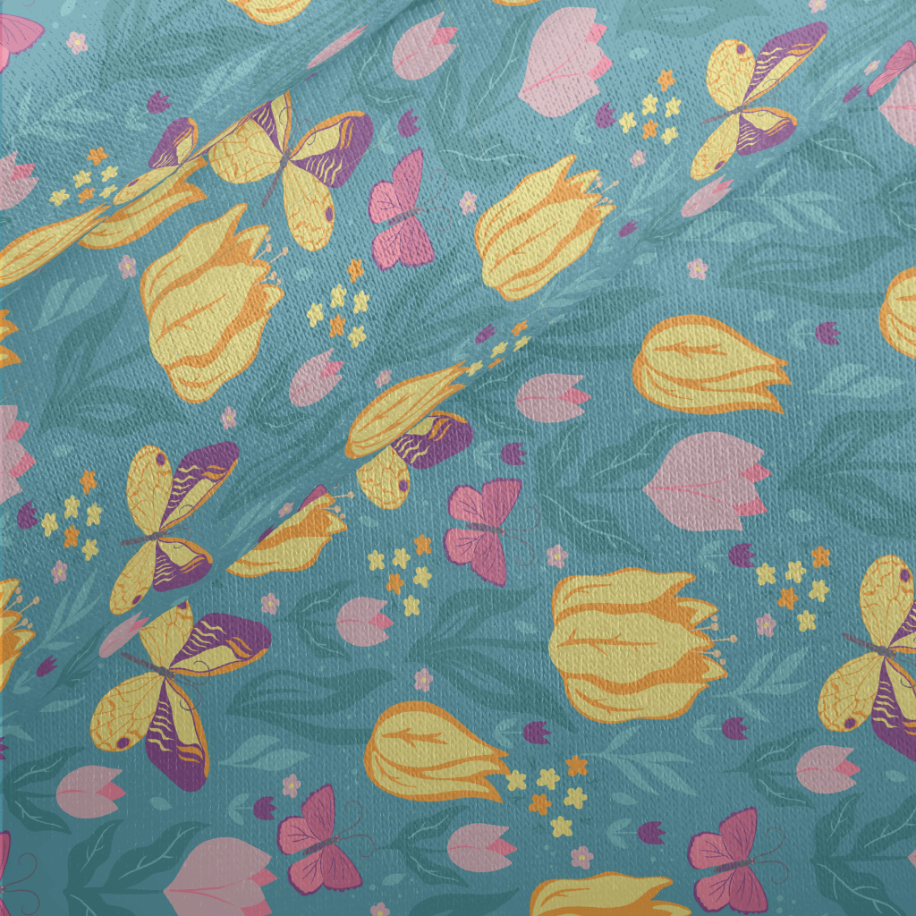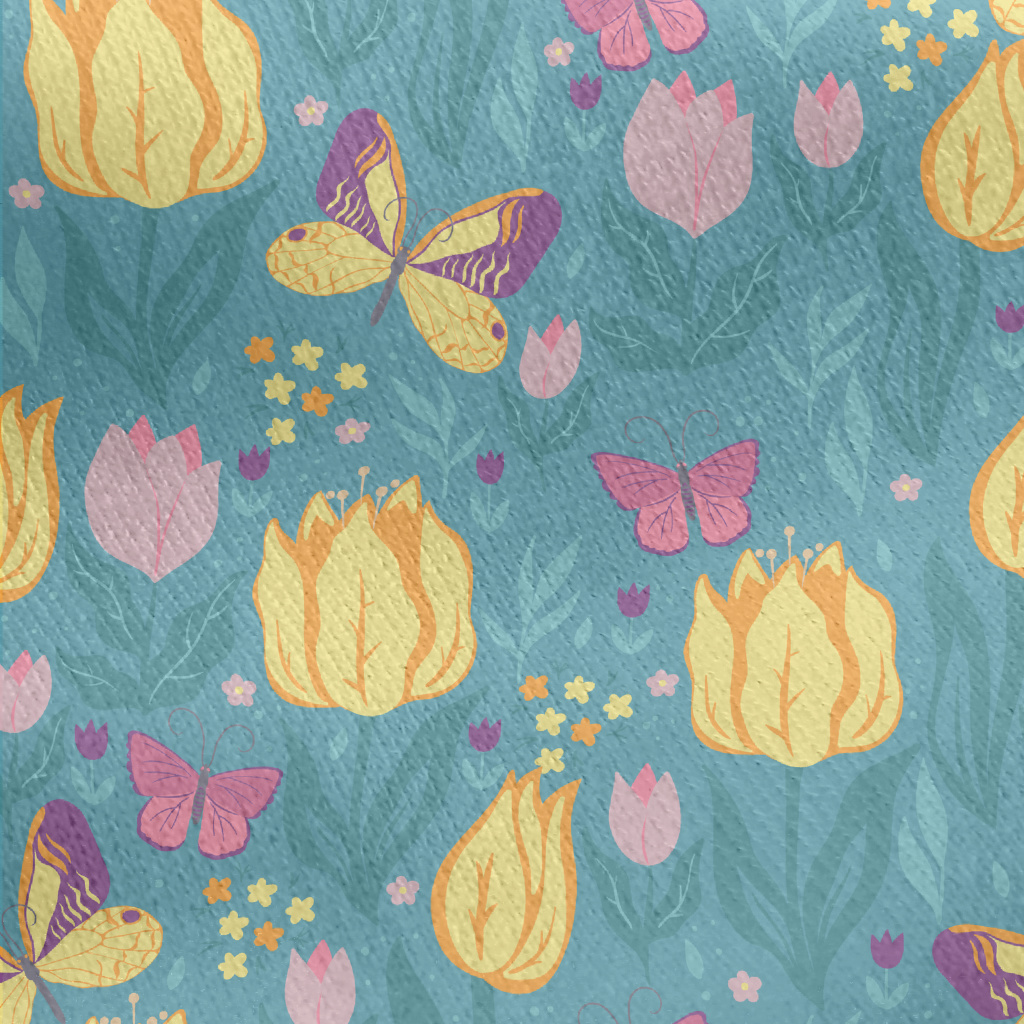 蝴蝶鬱金香花園刷毛布(幅寬150公分)
