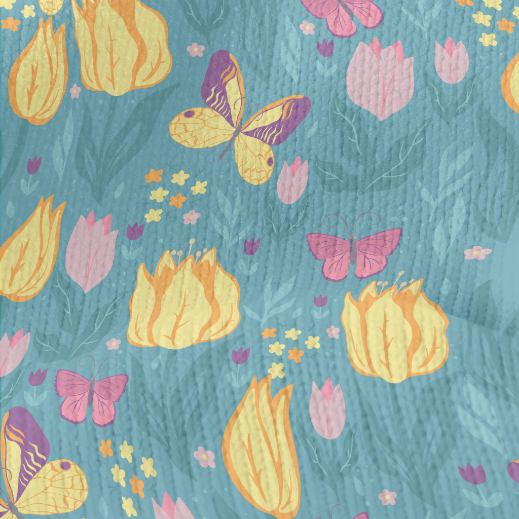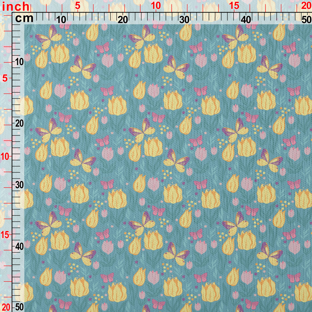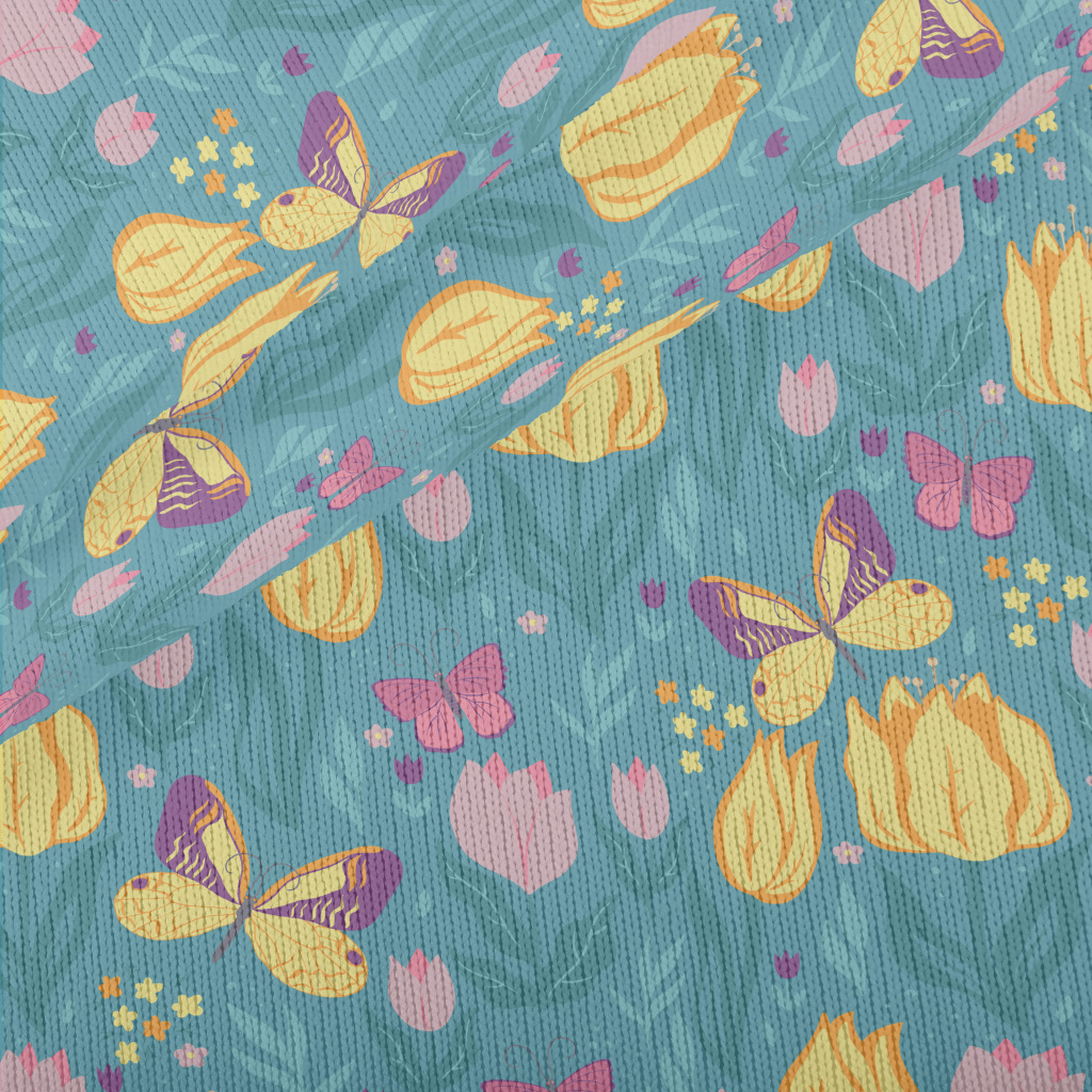 蝴蝶鬱金香花園仿毛衣布(幅寬150公分)