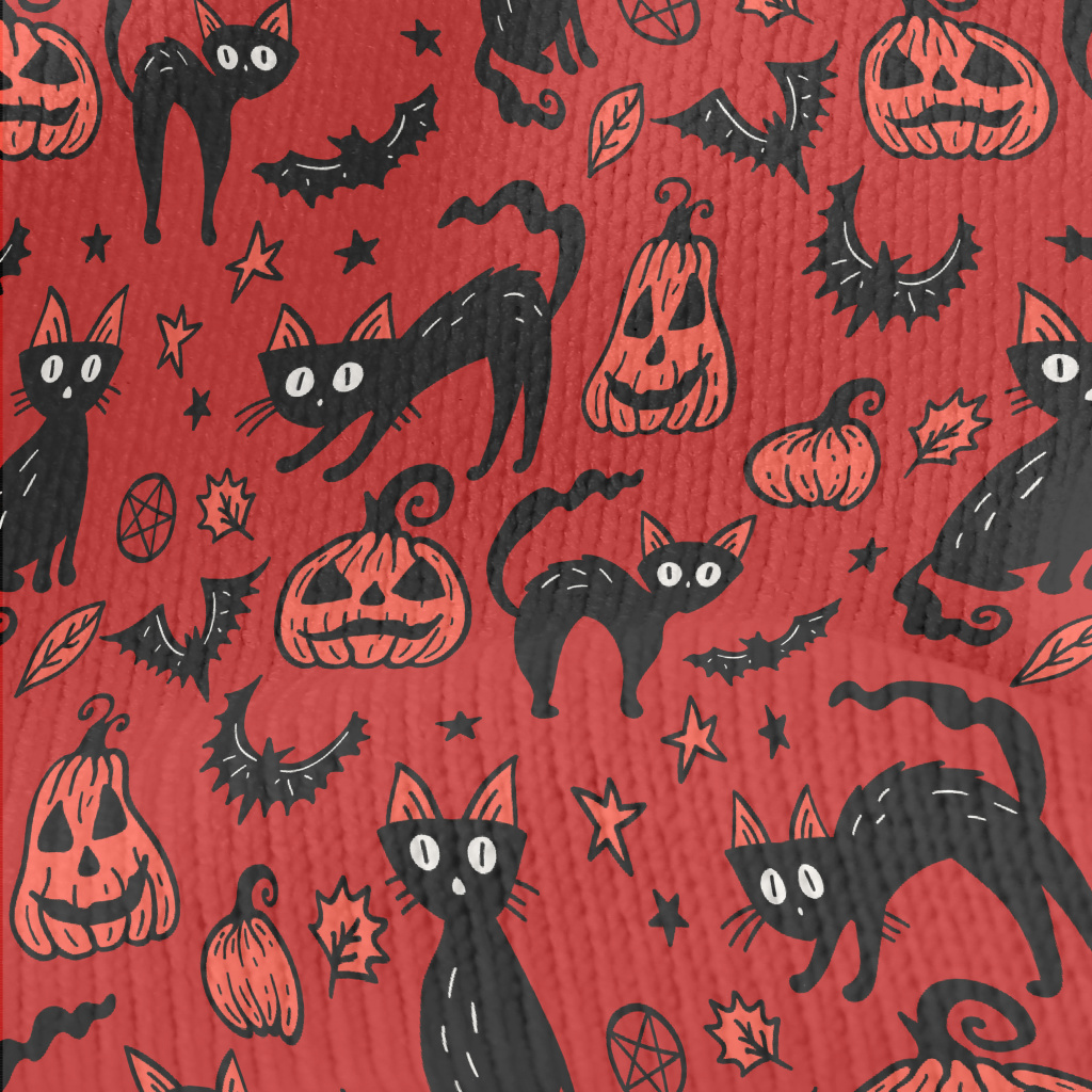 萬聖南瓜黑貓仿毛衣布(幅寬150公分)