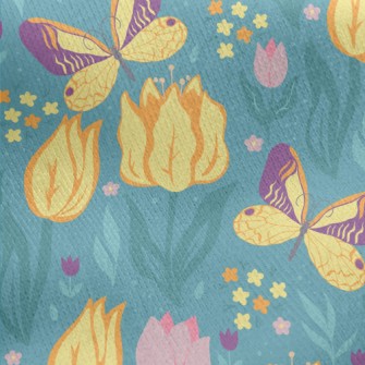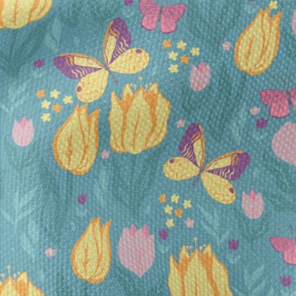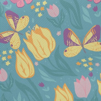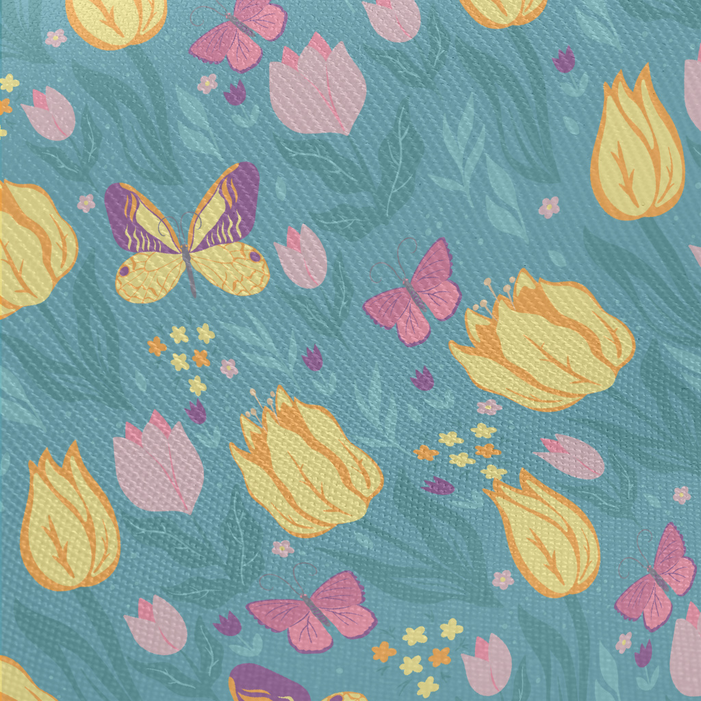 蝴蝶鬱金香花園厚棉布(幅寬150公分)