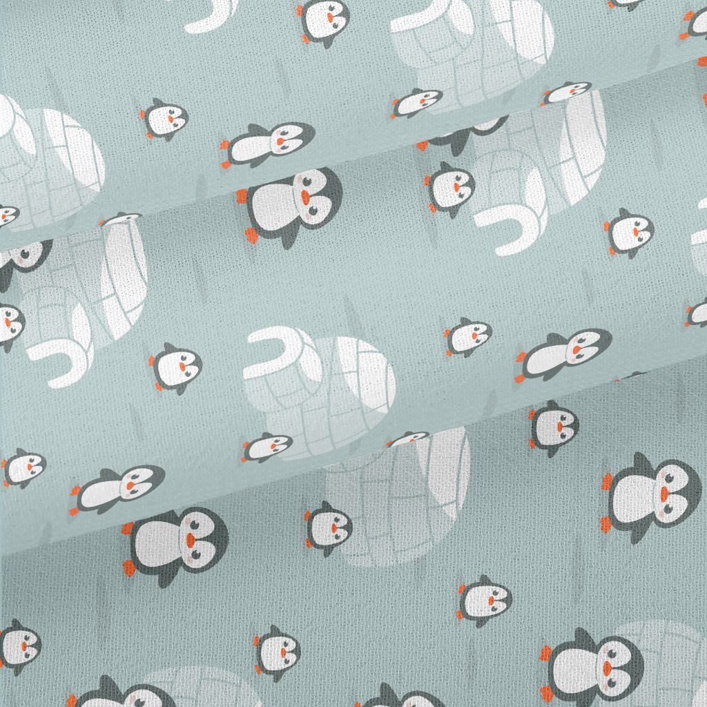 企鵝家族與冰屋雪紡布(幅寬150公分)